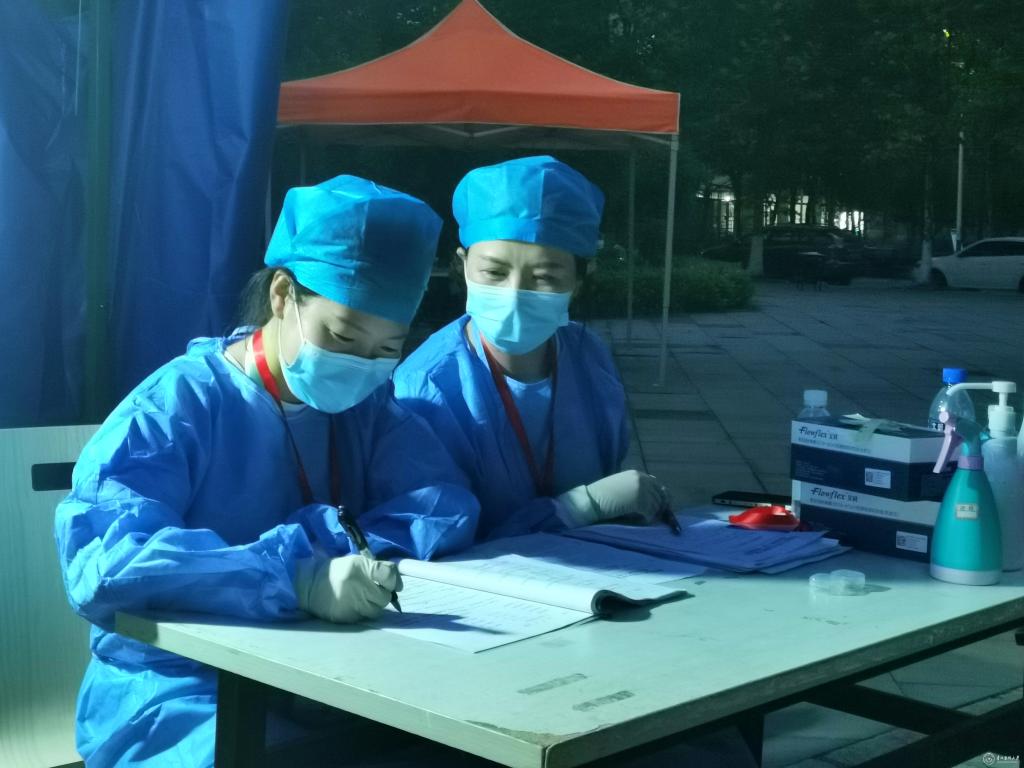 “第14天,凌晨两点半,核酸检测有序进行!每个人都在自己平凡的岗位上默默坚守!相信疫情很快就会结束!”