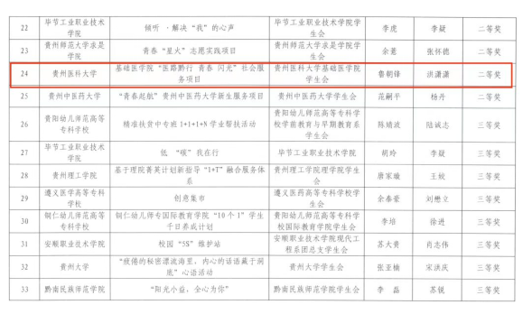 为深入学习习近平新时代中国特色社会主义思想,加强高校学生会(研究生会)建设质量,纵深推进学生会(研究生会)改革,2022年10月至11月,共青团贵州省委和贵州省学生联合会举办了贵州省高校学生会(研究生会)服务学生项目大赛。校团委积极组织学校各级学生会参加,经主办方审核、评审团网络评审、评审专家现场评审,永利官网学生会“童声琅琅 润育成长——民族地区儿童普通话叙事能力提升行动”、药学院学生会“叶阑半夏映陈皮,少年携药追星辰”项目、基础医学院学生会“医路黔行 青春闪光”社会服务项目荣获二等奖, 公共卫生与健康学院学生会“新时代背景下高校学生会‘十心十意’思想引领服务的构建与实践”荣获三等奖。