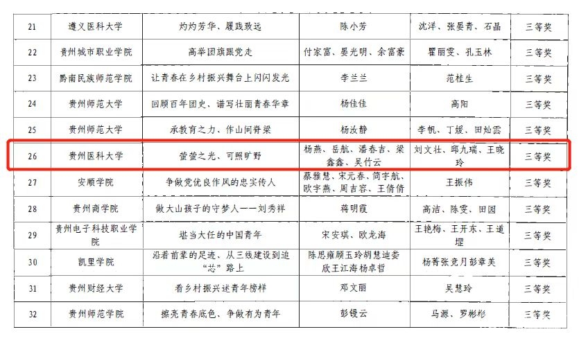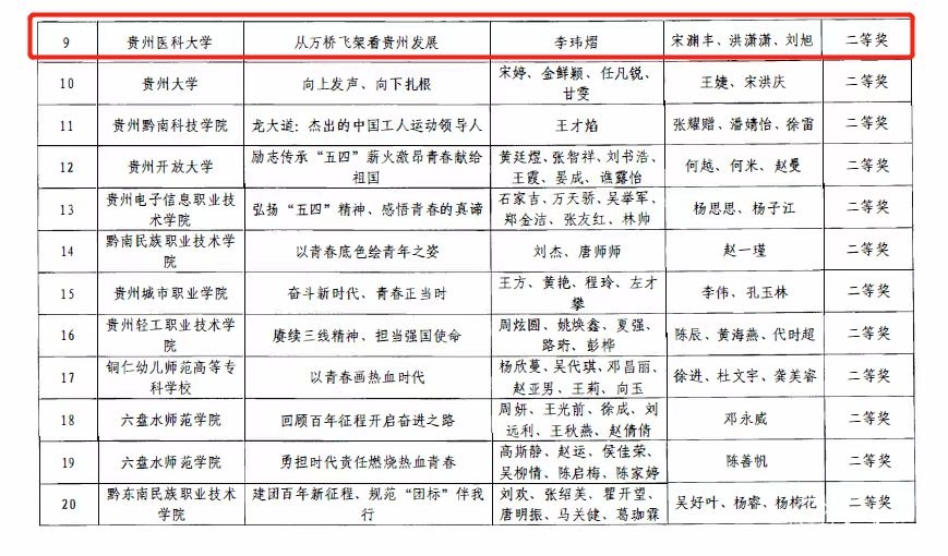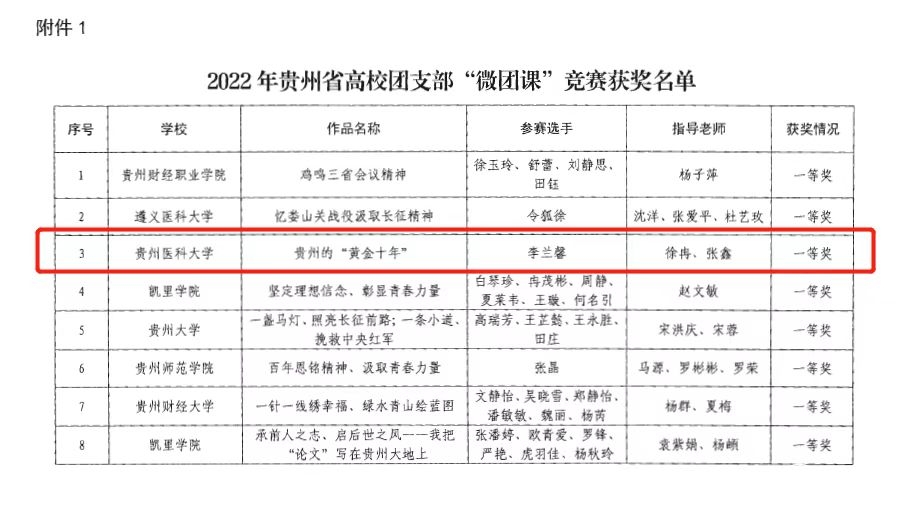 近日,团省委下发了《关于2022年贵州省高校团支部“微团课”竞赛获奖结果的通报》,77779193永利官网荣获优秀组织奖。永利官网“贵州的‘黄金十年’”作品获一等奖、“从万桥飞架看贵州发展”作品获二等奖、“莹莹之光、可照旷野”作品获三等奖、“团徽闪耀百年青春奋勇争先”作品获优秀奖。