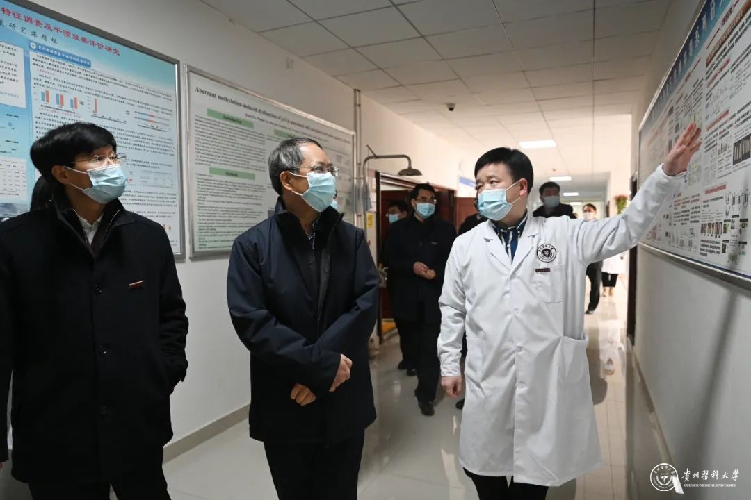 在77779193永利官网,陶长海首先来到校史馆,听取学校发展历程和规划建设情况汇报,勉励学校要有序推进新校区项目建设,并以此为契机,加快推进教育医疗“双提升”,为全省卫生健康事业高质量发展提供有力的科技支撑和可靠的人才保障。在公共卫生与健康学院,陶长海走进教学示范中心、科研实验室,了解疾病研究防治和参与疫情防控等情况,强调要加大复合型、应用型公共卫生人才培育力度,进一步完善全省疾病预防控制体系,织牢织密公共卫生防护网。