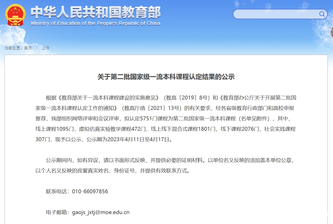 近日,教育部发布《关于第二批国家级一流本科课程认定结果的公示》,永利官网4门课程入选,其中《医学细胞生物学》《儿科学》和《基础医学整合实验课程》3门课程入选“线下一流课程”;《急危重症护理学》入选“线上线下混合一流课程”。