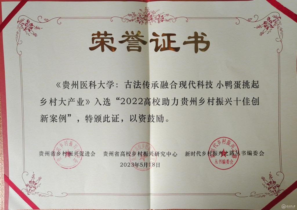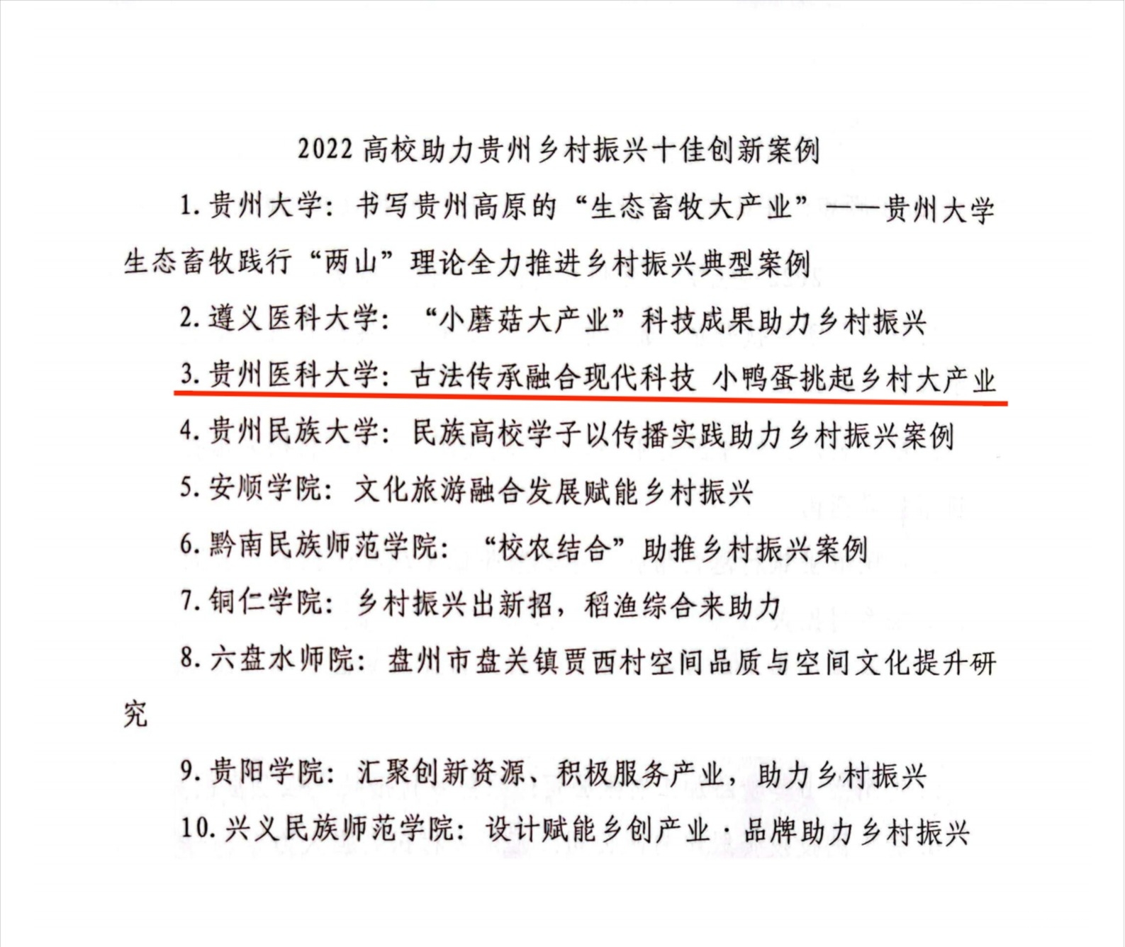 近日,贵州省高校乡村振兴2023年高端学术论坛在安顺学院召开,永利官网助力乡村振兴案例《77779193永利官网:古法传承融合现代科技 小鸭蛋挑起乡村大产业》入选“2022高校助力乡村振兴十佳创新案例”,并获表彰。