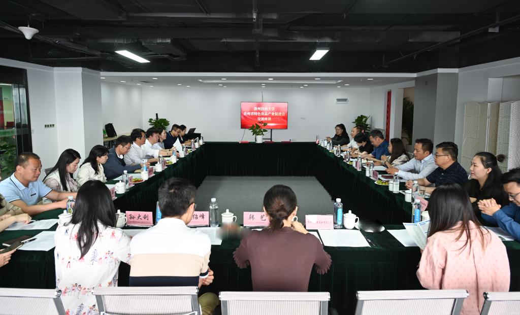 贵州省特色食品产业促进会副秘书长鲁涛,副秘书长兼特色食品产业集团、电商公司总经理甘立梅,省特色食品产业数字经济中心副主任李天尚,分别介绍促进会情况、产业总部基地建设情况、产业集团运营情况。公共卫生与健康学院院长洪峰介绍学院概况、教学科研、人才培养等情况。