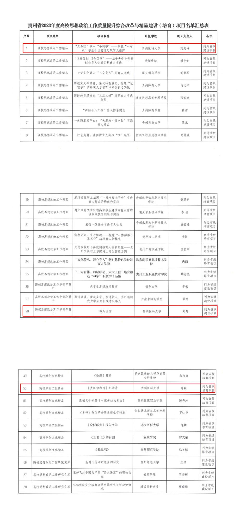近日,省教育厅办公室公布了贵州省2023年度高校思想政治工作质量提升综合改革与精品建设(培育)项目名单。永利官网推送的《贵医协和情》纪录片(项目负责人:陈颖)获省级“高校原创文化精品”立项;《“大思政”嵌入“小网格”——依托“一站式”学生社区打造思政育人矩阵》(项目负责人:刘美伶)获省级“高校思想政治工作精品项目”建设(培育)项目立项;《微炬医言》(刘慧)获省级“高校思想政治工作中青年骨干”建设(培育)项目立项。
