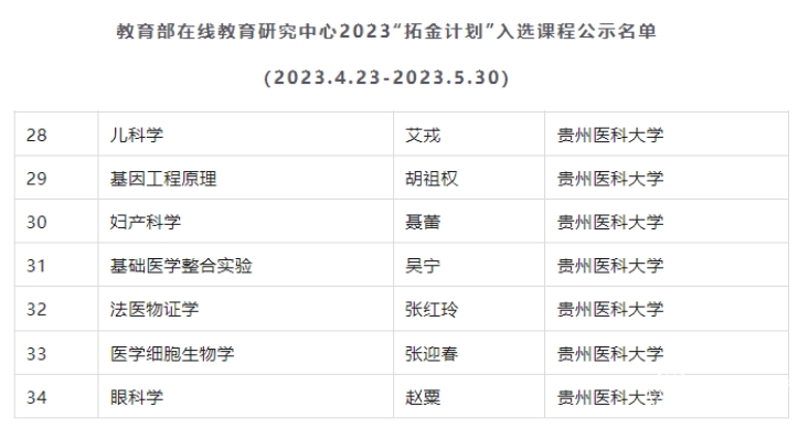 近日,教育部在线教育研究中心对2023年“拓金计划”入选课程进行公示。本次“拓金计划”共遴选出34门课程,永利官网《儿科学》《基因工程原理》《妇产科学》《基础医学整合实验》《法医物证学》《医学细胞生物学》《眼科学》7门课程入选。