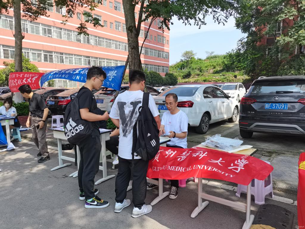 为吸引更多优秀生源报考永利官网,6月19日起,学校通过学校官网、微信公众号、“阳光高考”等线上渠道分类推送招生信息,宣传学校办学条件、办学特色、招生情况等内容。在招生就业处开设招生热线电话,为广大考生提供最便捷快速的咨询服务;6月23日至27日,由校领导、部分职能部门负责人、各学院党政班子成员及辅导员等组成的线下招生宣传工作组,赴省内各地(州、市)开展宣传及现场咨询工作,参加贵阳晚报和中国教育在线在贵阳国际生态会议中心和六盘水师范学院等地举办的大型招生宣传会,前往贵阳市第一中学、南明甲秀高级中学、花溪区清华中学、遵义航天中学、遵义市南白中学、安顺市第一高级中学、都匀一中、凯里一中、兴义一中、铜仁市第一中学、毕节市第一中学、毕节梁才学校等多所省级示范性重点高中开展招生宣传活动。