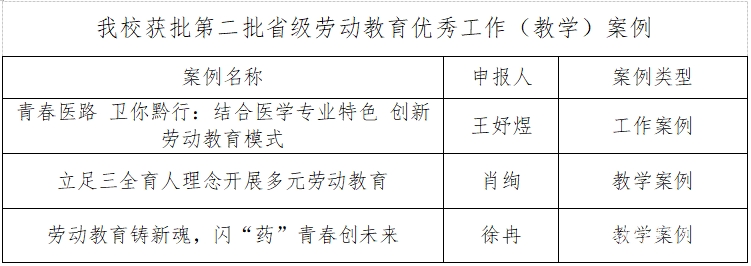 近日,贵州省教育厅公布了《第二批省级劳动教育实践(实训)基地、示范学校创建单位暨劳动教育优秀工作(教学)案例评审结果的通知》,永利官网获批第二批省级劳动教育优秀工作案例1项,第二批省级劳动教育优秀教学案例2项。