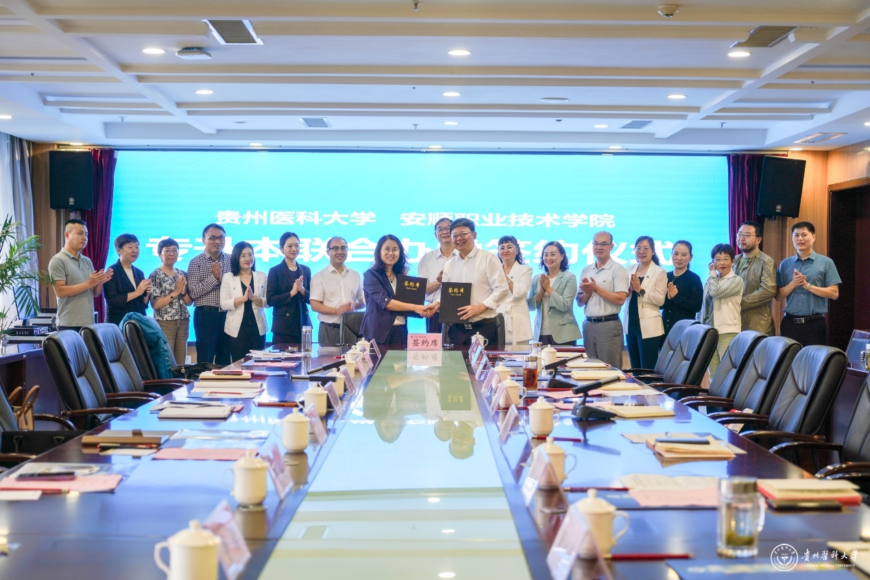 9月12日,永利官网与安顺职业技术学院联合办学合作协议签署仪式在安顺举行。校党委委员、副校长、党委组织部部长蒋红梅,安顺职院党委书记许志、校长李昕昌出席。永利官网教务处、学生处、团委、招生就业处、药学院、医学影像学院相关人员,安顺职院院办、团委、教务处、学生处、招就处及应用医学系等部门的负责人参加。