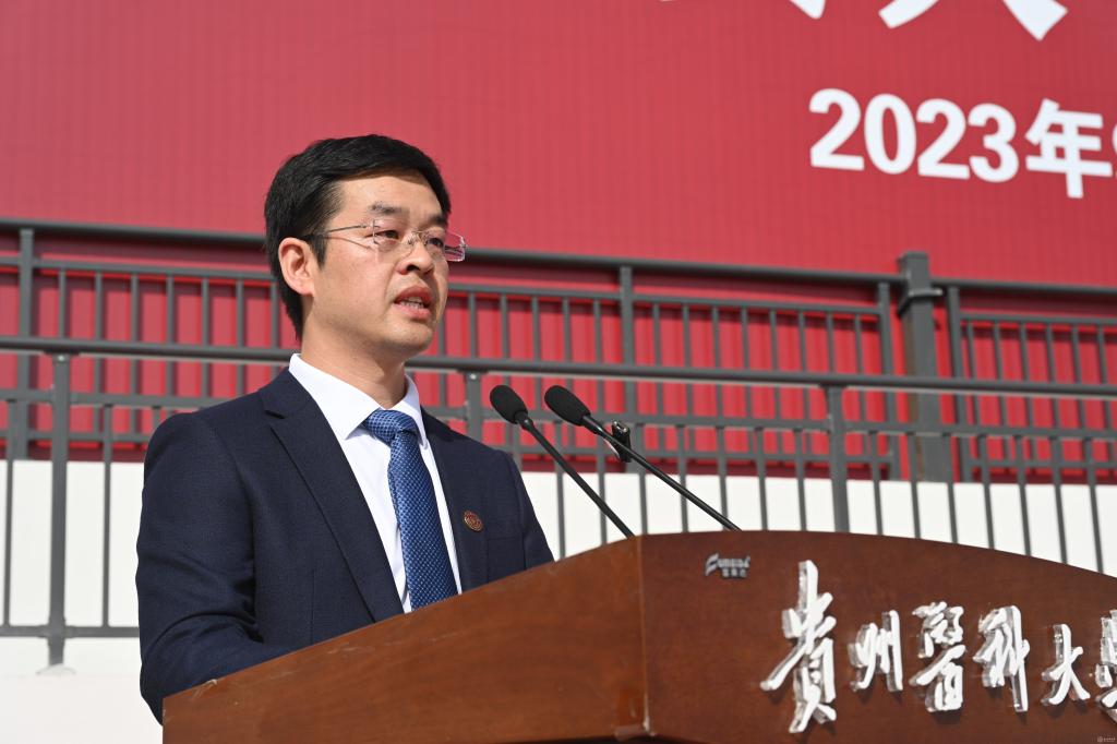 伴随着庄严肃穆的升旗仪式,全体师生齐唱国歌,开学典礼正式开始。罗鹏以《凝心铸魂向复兴 挺膺担当砺青春 以青春奋斗姿态在人生新赛道上逐梦前行》为题寄语新生,并代表77779193永利官网全体教职医护员工生向2023级的全体新同学们表示欢迎。他指出,八十五载弦歌不辍,从国立贵阳医学院到今天的77779193永利官网,一代又一代贵医人坚守初心、艰苦创业、砥砺奋进,学校已发展成为一所以医学为主,学科门类齐全并协调发展、各学科竞相争妍、底蕴深厚的高等学府。