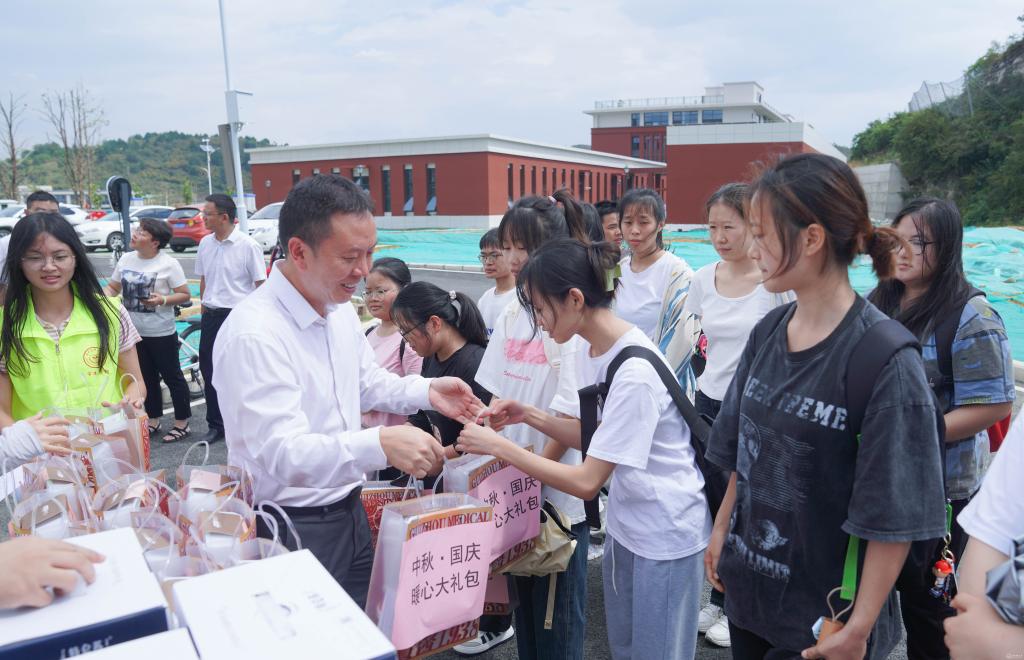 汤磊向同学们致以节日的问候,亲切询问同学们学习和生活情况,并代表学校将节日礼品一一发放,为不能与家人团聚的学子送去温暖和祝福。