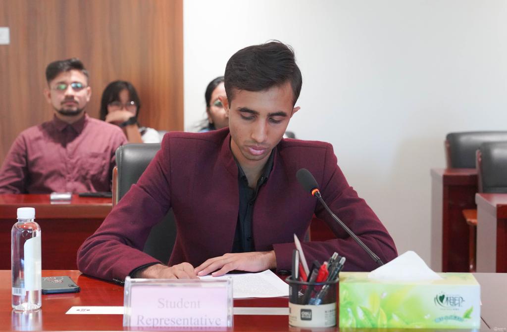 学生代表尤明(Umer Muhammad,巴基斯坦,临床医学2021级)分享在贵医学习生活的感受,表示作为一名国际学生,应当做好面对更高强度的学习和更自主的环境的心理准备,希望在这一周中同学们能与永利官网国际生缔结友谊,共度成果累硕的访学周。