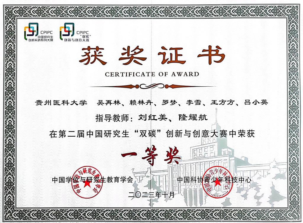 10月28日至29日,第二届中国研究生“双碳”创新与创意大赛决赛在哈尔滨举行。 永利官网生物与工程学院(健康医药现代产业学院)院长刘红美教授、隆耀航副教授指导学生吴再林、赖林卉、罗梦、李雪、王方方、吕小英完成的“基于循环经济的喀斯特双碳探索与生态产出”项目经过初赛、复赛的层层角逐,成为全国唯一一个医科类院校在该项赛事上入围决赛的项目,并最终荣获全国一等奖。指导教师刘红美、隆耀航荣获“优秀指导教师”。