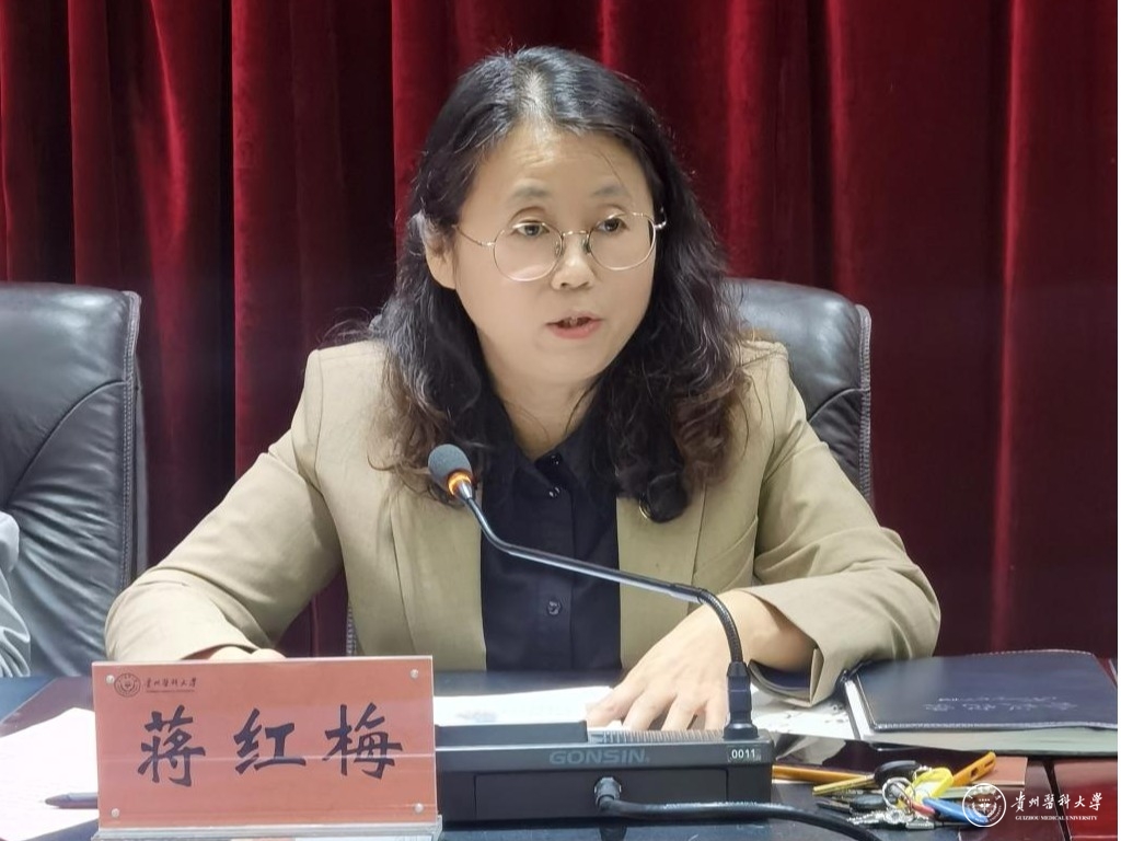 蒋红梅对新入职的教职工表示诚挚的祝贺和热烈的欢迎。蒋红梅介绍学校的发展历史、基本情况以及近年来在党的建设、人才培养、科研工作等方面取得的成绩,并对新入职的教职工提出要求:坚定理想信念,践行初心使命;涵养师德师风,秉承高尚品格;提升育人能力,立足科技前沿,希望全体新入职教职工弘扬高尚师德,潜心教书育人、立德树人,在强化业务水平上下苦功,在培养学生成长成才、服务学校提升发展中增长才干、建功立业,在建设特色鲜明的百年医科大学新征程上书写人生精彩华章。