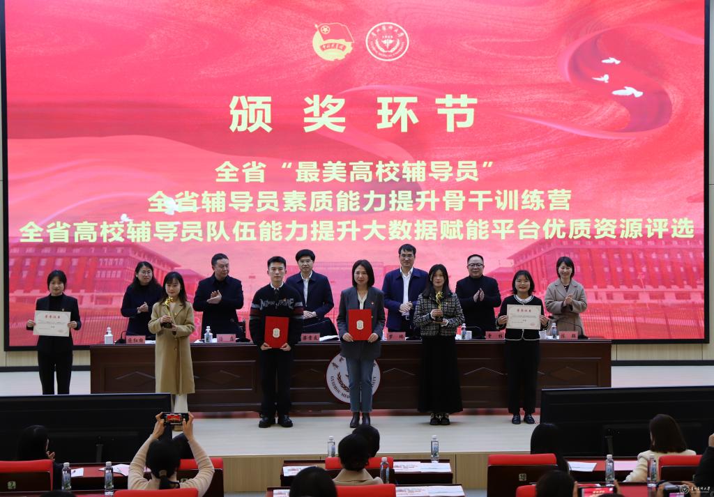 曾柱宣读《省委教育工委省教育厅关于公布2023年贵州省“最美高校辅导员”评选结果的通知》《2023年贵州省高校辅导员素质能力提升骨干训练营表彰名单》《省教育厅办公室关于公布全省高校辅导员队伍能力提升大数据赋能平台优质资源评选结果的通知》。