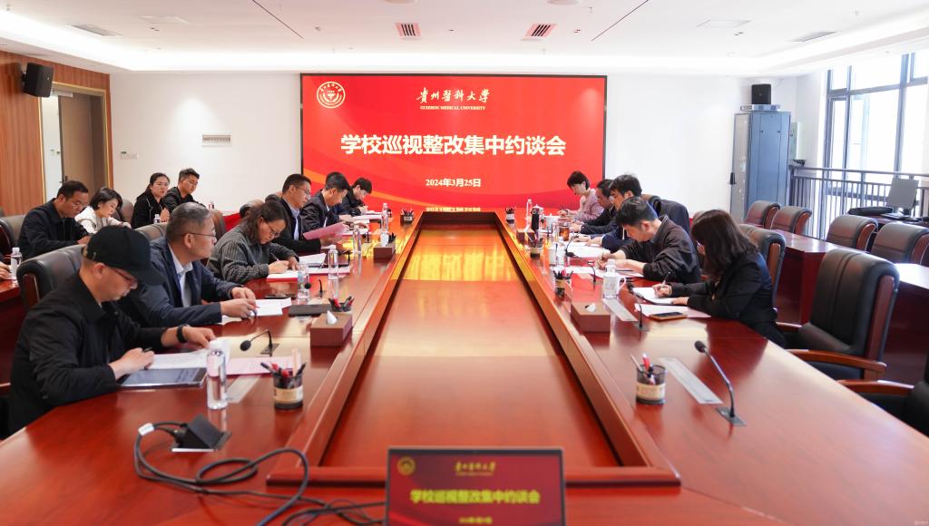 为进一步压实巡视整改主体责任,确保整改任务一项不漏、全面落地、见底清零。3月25日,学校在云漫湖校区知雨楼5楼会议室召开巡视整改集体约谈会。校党委副书记、校长罗鹏,校党委副书记刘文,校党委委员、附属医院党委书记李海洋,校党委委员、副校长蒋红梅,校党委委员、党委宣传部(精神文明办)部长(主任)陈颖出席。相关单位(部门)负责人,校巡视整改办公室有关同志参加。
