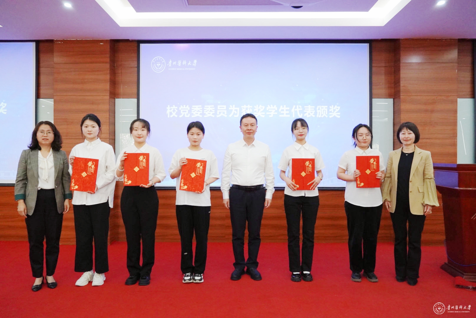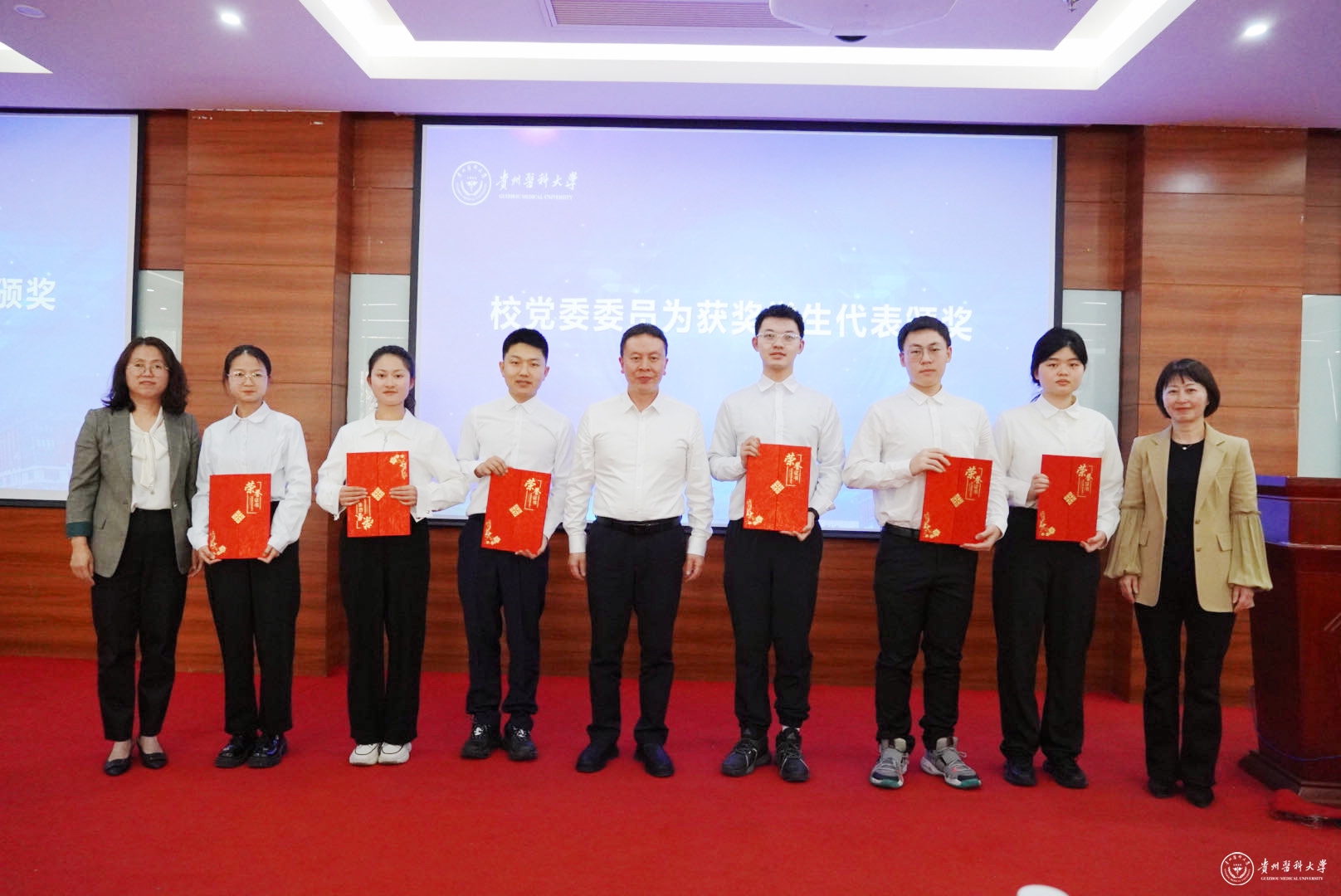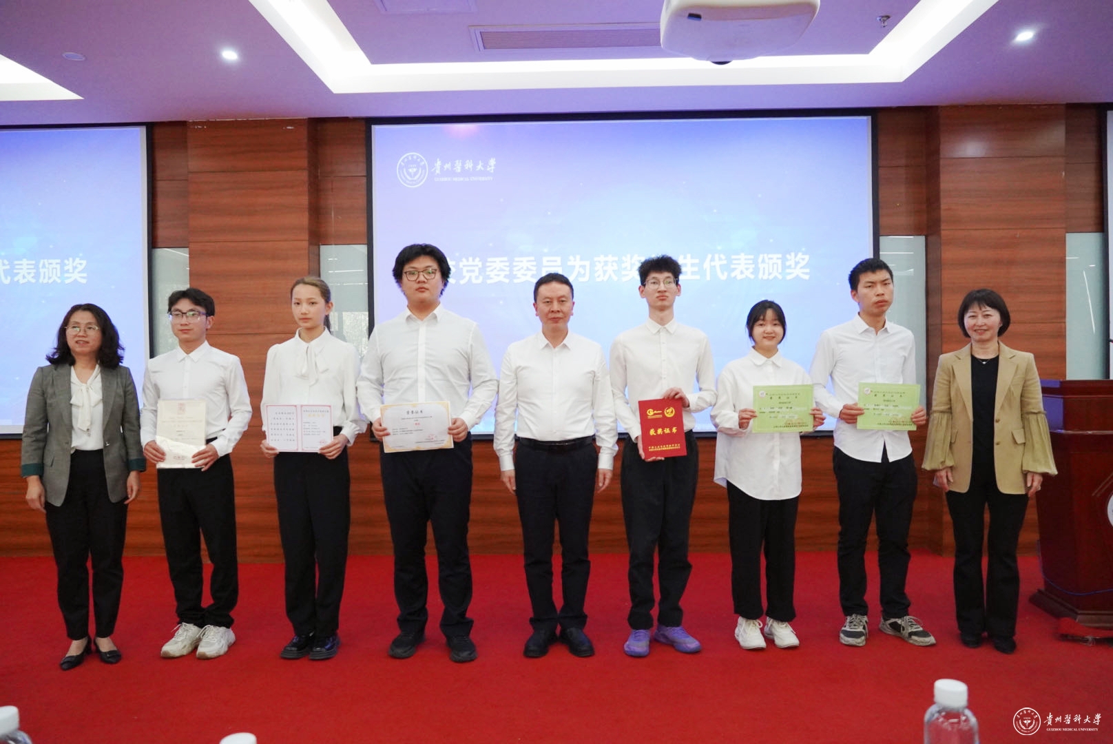 汤磊、蒋红梅、陈颖为2023年学科竞赛获奖学生代表颁奖。