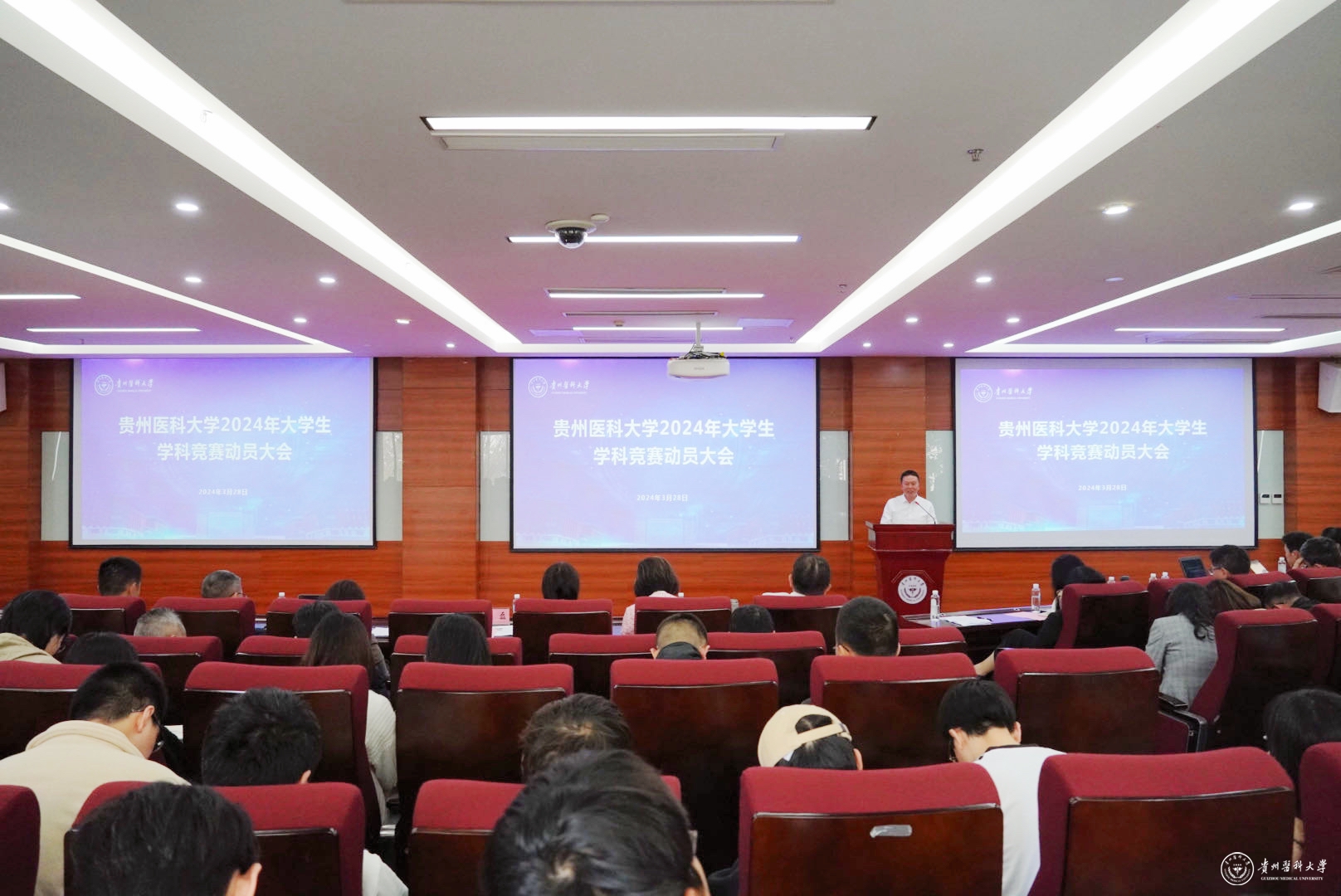 汤磊就进一步抓好学校2024年度学科竞赛工作提出要求,一是要充分认识做好学科竞赛工作的重要意义。学科竞赛是大学生发展创新思维、开阔眼界、提升能力的重要平台,对青年学生健康成长成才具有十分重要的促进作用。年度学生学科竞赛情况被纳入高校高质量发展考核指标。办好学科竞赛是落实“立德树人”根本任务、实施“三全育人”的重要抓手。二是要有效提升学校学科竞赛的组织管理水平。各学院和各科研单位要结合自身学科发展实际,探索参与各项比赛的有效路径,鼓励青年教师、高层次人才、专家教授参与竞赛指导。各相关职能部门要进一步强化政策引导,围绕全方位育人目标,推动形成完善的学生竞赛组织运行体系、培育孵化体系、奖助激励体系,充分激发全校师生的创新创业热情。三是要切实提高各类竞赛比赛成绩。要主动向省外高水平医科类院校学习,认真分析学科发展特点,做好优质项目的挖掘和培育。要围绕医科背景和贵州经济社会发展需要,打造与学校专业优势同向同行、与学科建设同频共振的特色作品。要重点关注竞赛的覆盖面,引导更多大学生爱好科学、参与科创、形成氛围,放大工作效果、提升育人实效。