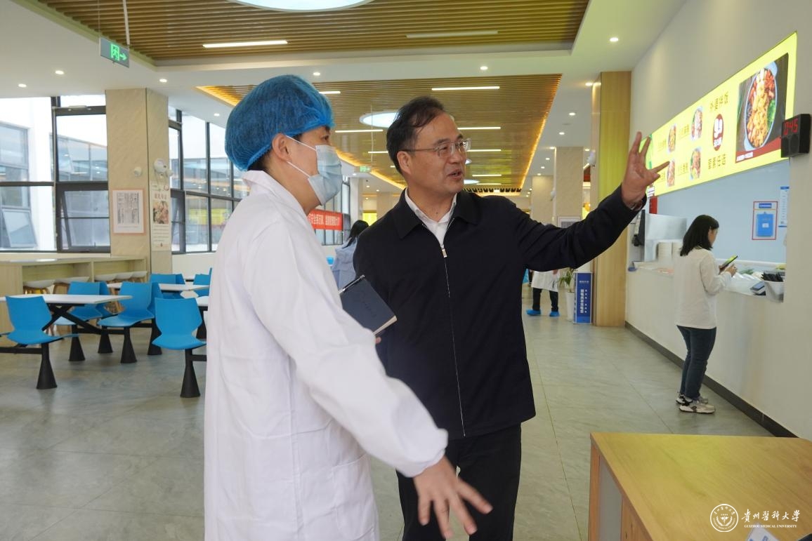 4月23日,国家工作专班新疆检查组校园食品安全互查贵阳第二检查组新疆维吾尔自治区教育厅安全稳定处副处长达吾来提·居马别克、乌鲁木齐市高新区市场监管局食品科科长丁哲到永利官网开展校园食品安全交叉检查。副校长沈祥春、后勤管理处处长赵平、贵安新区市场监管局食品安全总监王彪、贵安新区市场监督管理局马场分局局长王明芳陪同检查。