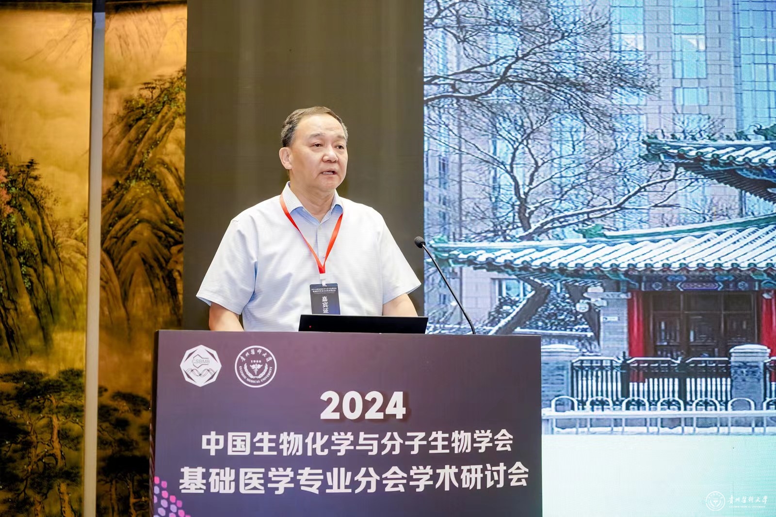 沈祥春代表承办方致辞,对来自全国各地的专家学者表示热烈的欢迎,并从历史沿革、学科建设、科学研究等方面介绍了学校相关情况,希望通过此次会议加强基础医学领域的建设,加深与研究领域专家的合作交流,为推动基础医学乃至整个生命科学的发展贡献智慧和力量。也期待各位专家能够对贵医的发展建设提出宝贵意见和建议。