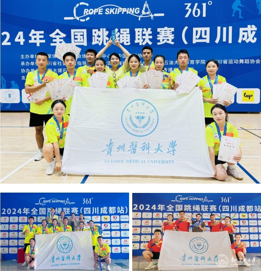 本次比赛不仅展现了花样跳绳这一新兴体育项目在全国的迅猛发展,也是对运动员们竞技水平的一次新挑战,更是对一个团队团结向上、顽强拼搏、不断超越自我的精神的考验,永利官网学子在本次比赛中的优异表现不仅生动诠释了校训精神,展现了贵医风采,更体现了永利官网学子青春活跃,敢于拼搏,不怕艰难,勇往直前,精进不休的体育精神。花样跳绳队将继续劈波斩浪奋勇前行,再创佳绩!