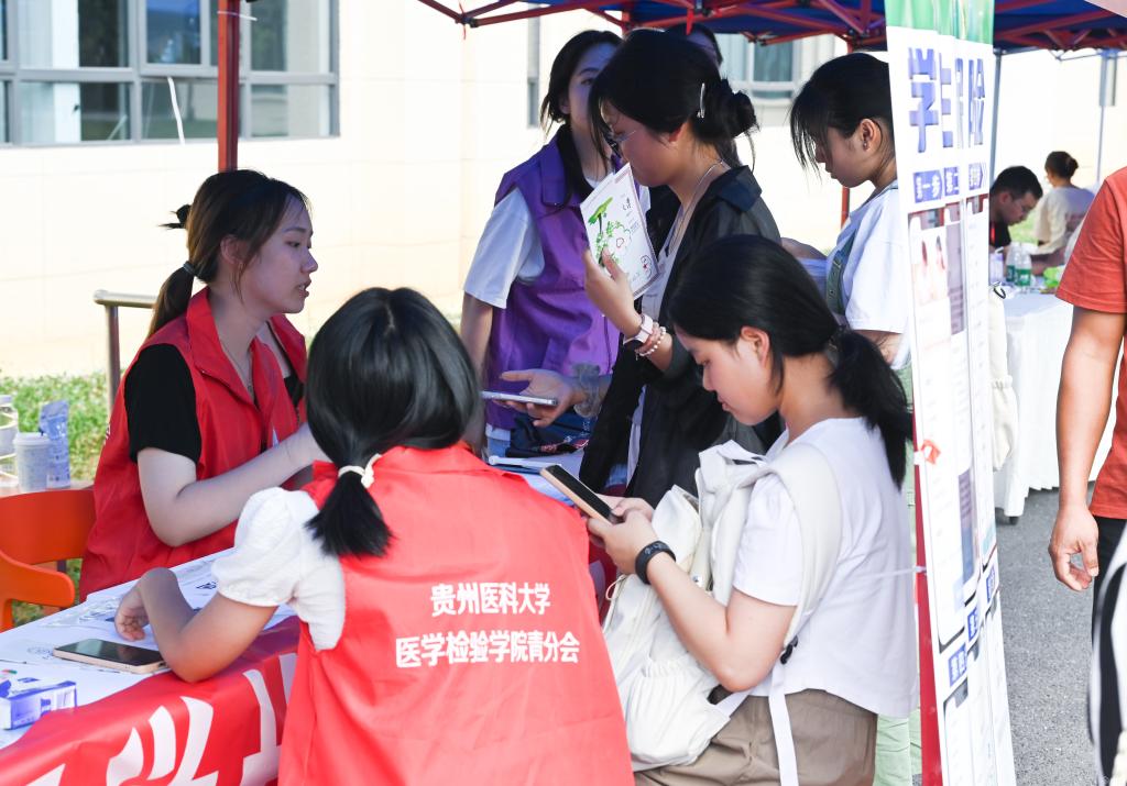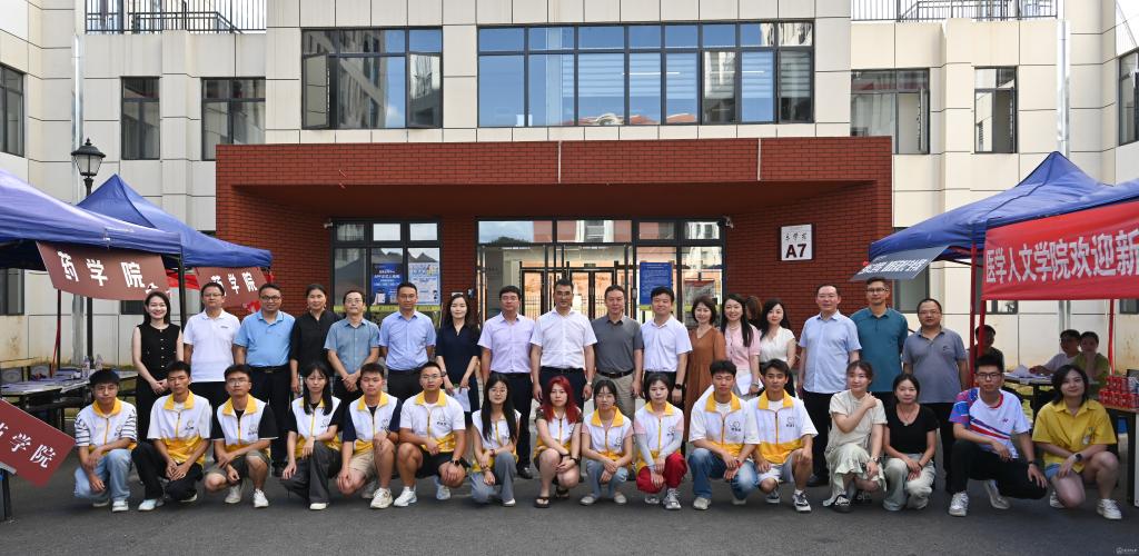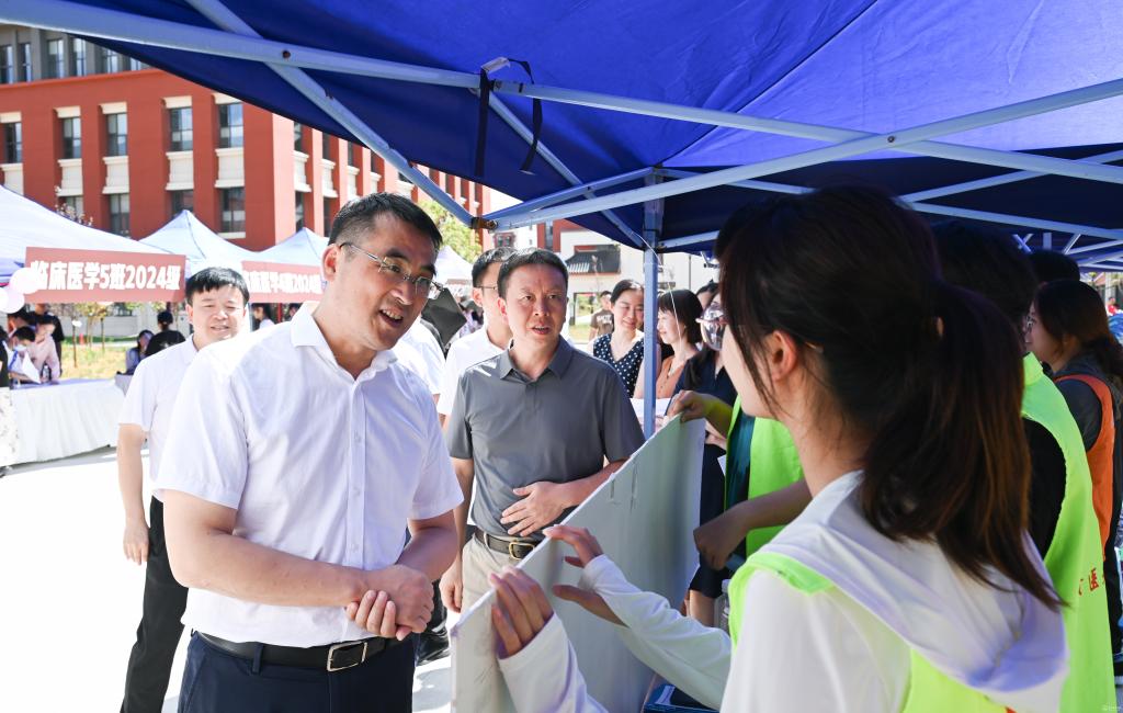 在各学院组团,校领导看望新生,向工作人员了解招生情况和报到进展,关注学生生活用品供应情况,与志愿者亲切交谈,希望同学们传承贵医“诚於己、忠于群,敬往思来”的校训精神,向医学前辈看齐,用专业和技能服务国家、贡献社会。