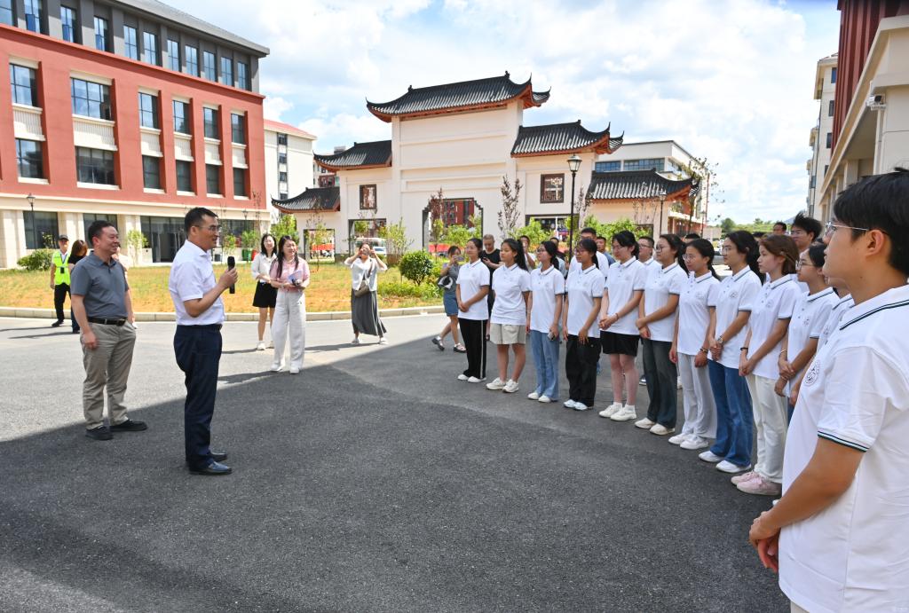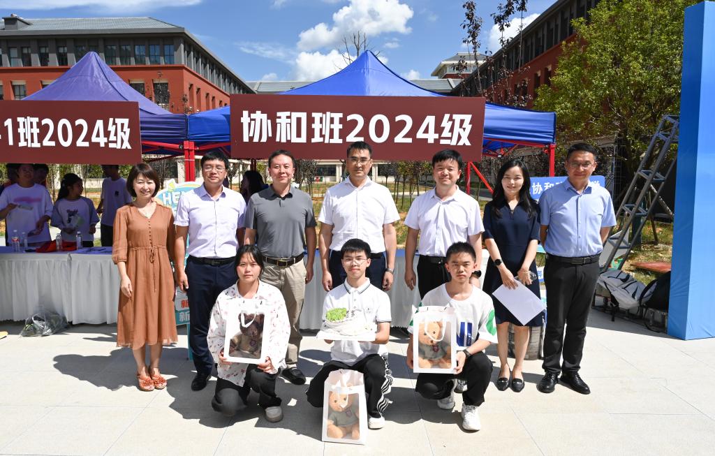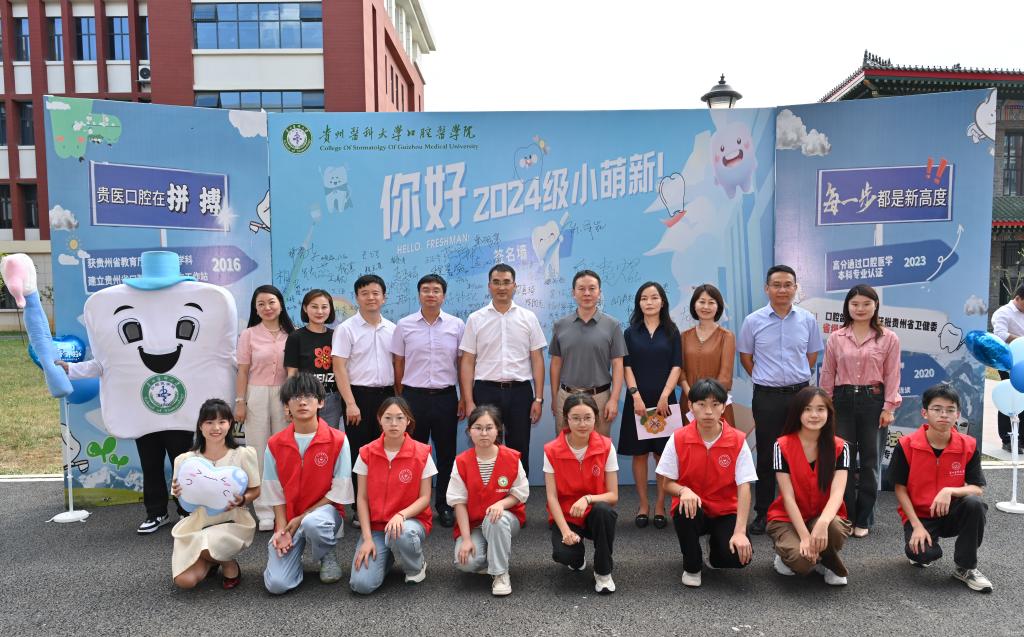 在基础组团迎新现场,校领导与协和班学子亲切交谈,校党委副书记、校长罗鹏勉励协和班学子,希望大家尽快融入贵医学习生活,在新的学期,新的环境里茁壮成长,为贵州的老百姓和人民健康做出新的贡献。
