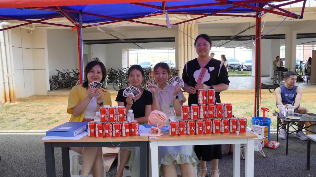 在热烈氛围的感染中,新生们兴致勃勃地和学长学姐交流、与迎新吉祥物互动,在校园标志合影打卡,2024级萌新的贵医故事就此开启。