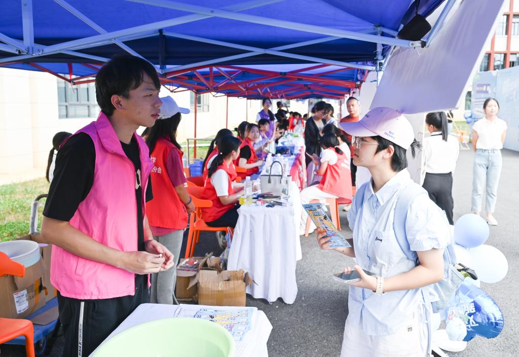 在二号门校园乘车点,校领导亲切慰问团青志愿者,动员学生社团开展丰富多彩的校园迎新活动,为新生营造温馨热烈的氛围,让他们尽快融入学校大家庭,顺利开启新的学校旅程。