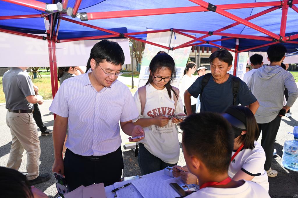 23日下午,校领导来到各迎新报到点,看望新同学,慰问工作人员和学生志愿者。