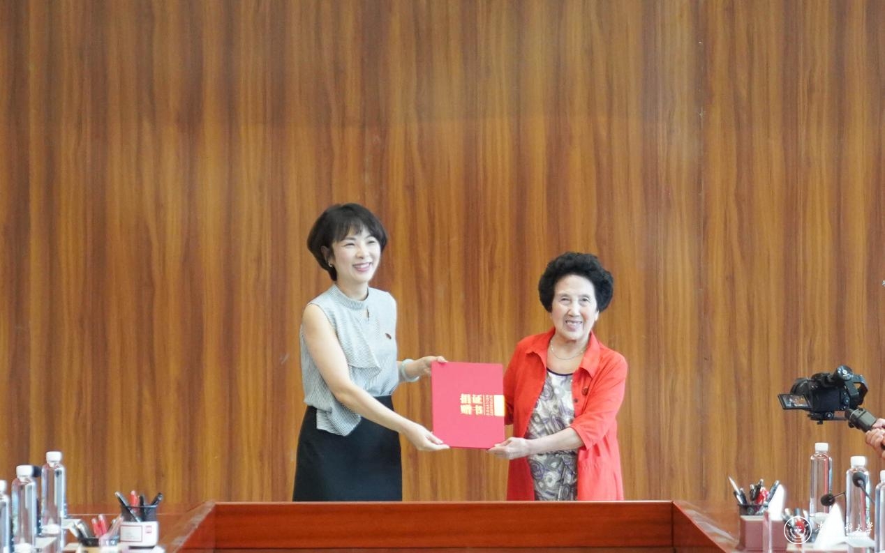 接着,举行了捐赠仪式。彭云秘书长代表教育发展基金会向校友代表黄达梅颁发捐赠赠书。