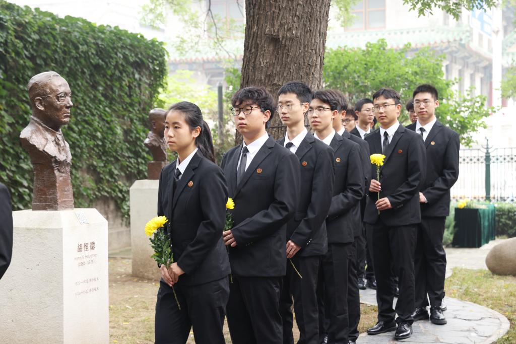 启动仪式结束后,两校领导与2023级“协和班”全体同学步入西庭仰径,共同瞻仰两校共同的校长——李宗恩先生的雕像,并向其敬献鲜花,以表追思。