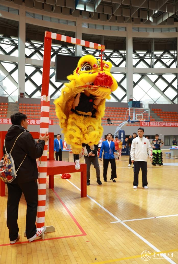 此次比赛共有26支来自全省各州市的队伍近300余名运动员参加。永利官网参赛队由运动与健康学院院长周利领队,周文源老师为主教练。经过激烈角逐,最终分别斩获传统南狮第一名、第三名,南狮竞速第一名、第二名,南狮障碍第二名、第三名等优异成绩,并荣获南狮项目团体总分第一名的佳绩。截至目前,永利官网南狮队在贵州省舞龙舞狮公开赛中传统南狮项目已实现五年蝉联冠军的辉煌战绩。