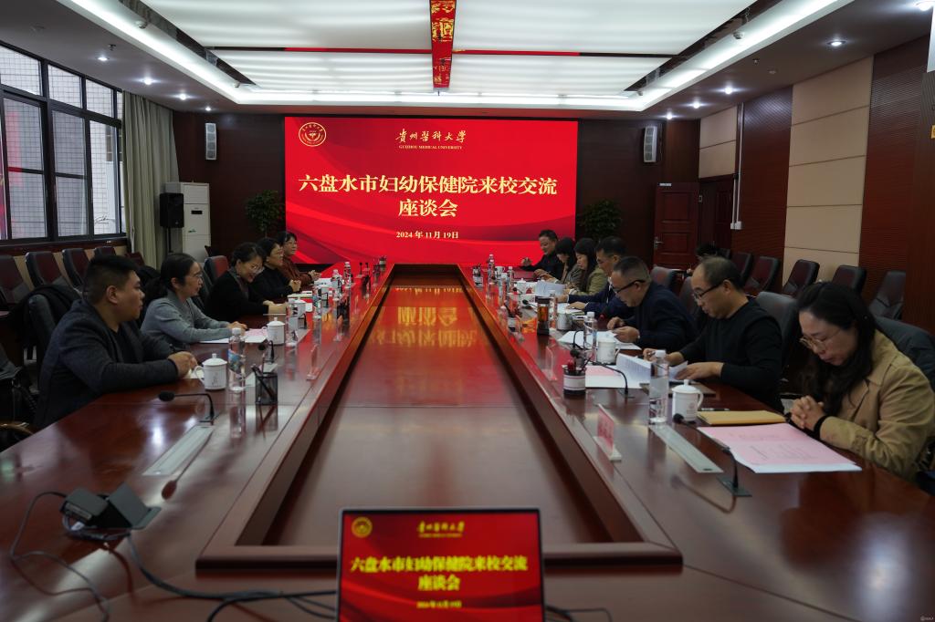11月19日,六盘水市妇幼保健院党委书记、副院长田艳,院长、党委副书记王露冰一行到校考察交流。永利官网党委副书记、校长罗鹏出席座谈会,校党委委员、副校长曾柱主持,党政办公室、教务处、研究生院、医院管理处、招生就业处负责人参加。