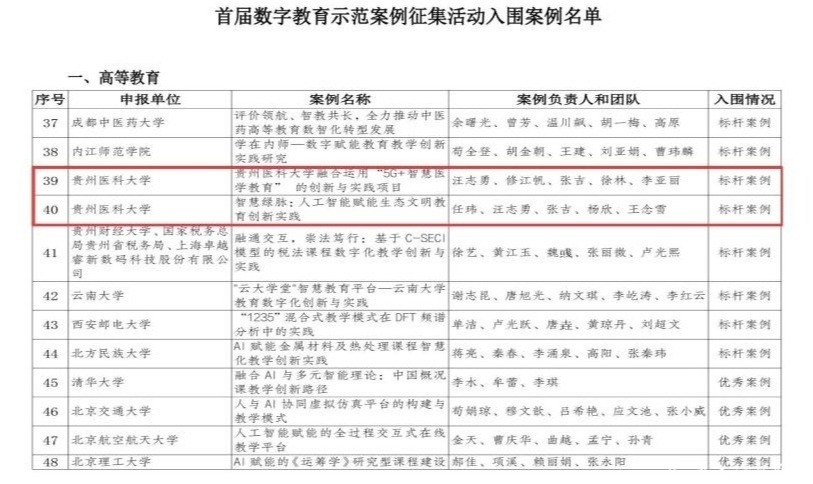 据了解,本次活动自启动以来,得到了清华大学、上海交大、复旦大学等双一流高校及各级各类院校的积极响应,活动覆盖全国31个省份的1000多所院校。经院校申报、专家论证等环节,确定首批标杆案例107个(高等教育44个)、优秀案例181个、特色案例311个,并根据申报单位的案例数量和质量,推荐15所院校为优秀组织单位。