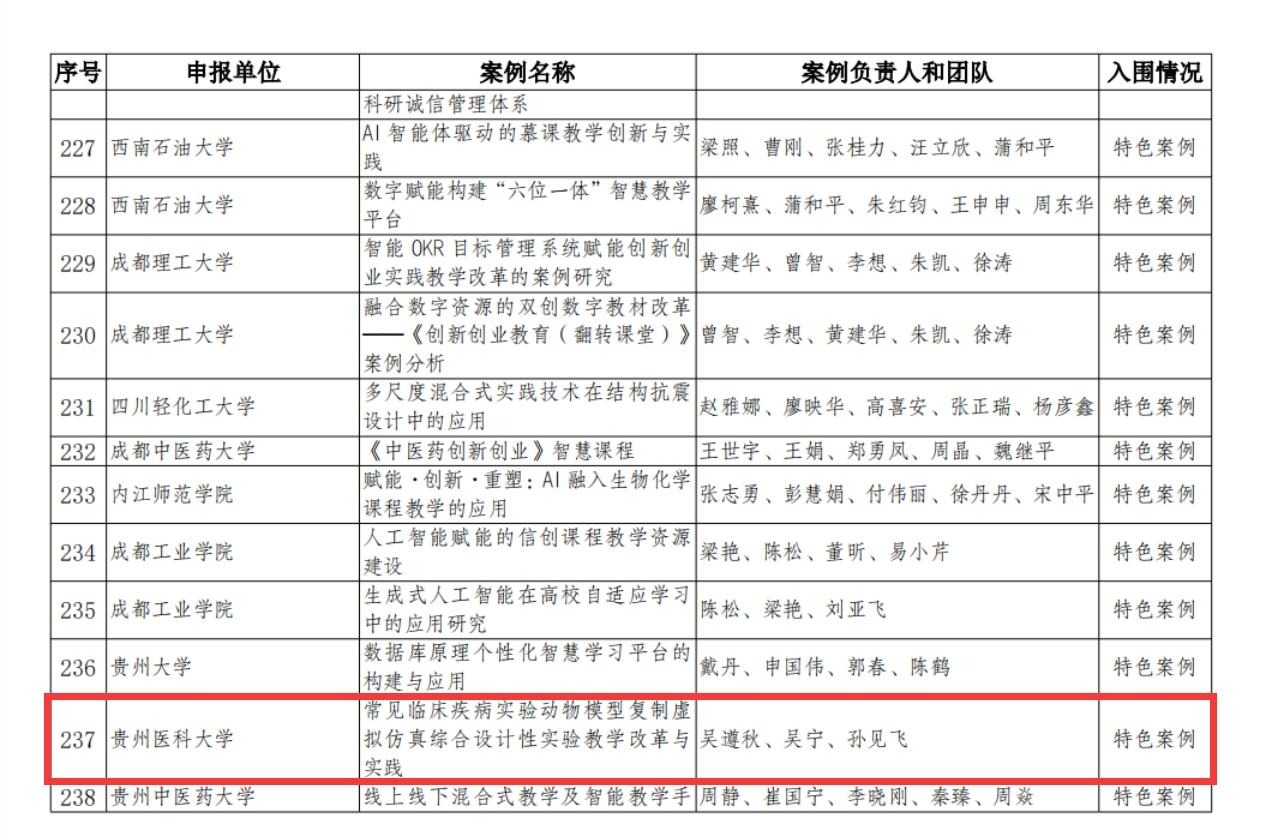 近日,中国教育技术协会公布了“新质·引领·赋能”首届数字教育示范案例征集活动入围案例。永利官网《77779193永利官网融合运用“5G+智慧医学教育”的创新与实践项目》《智慧绿脉:人工智能赋能生态文明教育创新实践》等2个案例入围,《常见临床疾病实验动物模型复制虚拟仿真综合设计性实验教学改革与实践》入围特色案例。这一荣誉不仅是对教学团队辛勤付出的肯定,也是对永利官网在数字化教育探索和创新方面的认可。