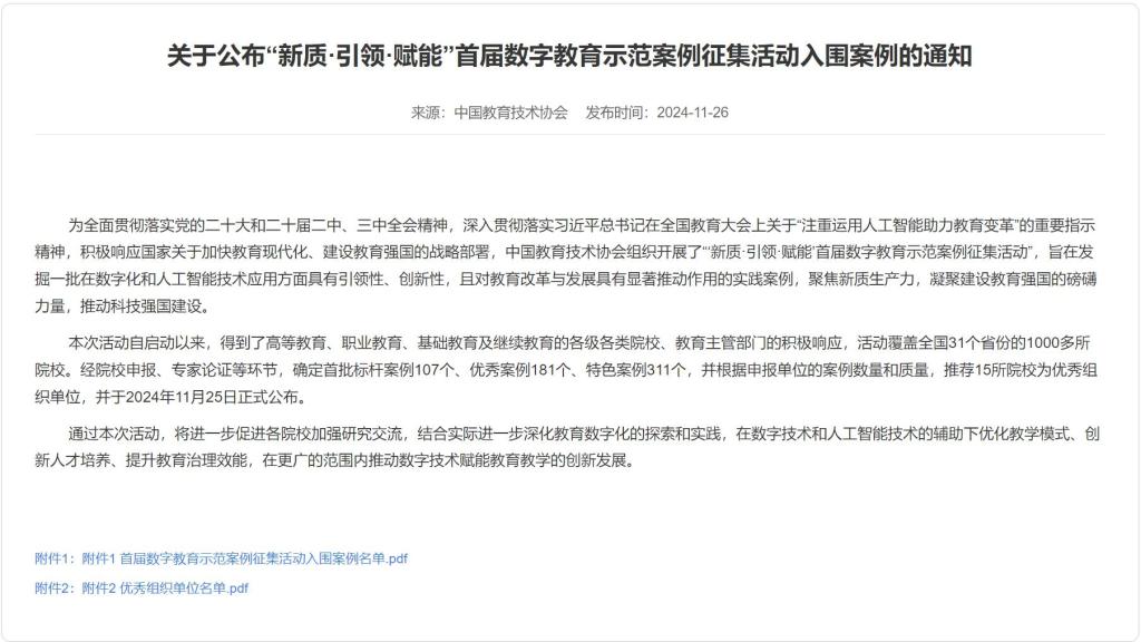此次入围标杆案例、特色案例评选不仅为学校赢得了荣誉,更为学校未来的数字化教育实践提供了宝贵的经验和启示。我们将以此为契机,进一步加强数字化教育的探索和实践,为推动永利官网数字教育的高质量发展贡献力量。
