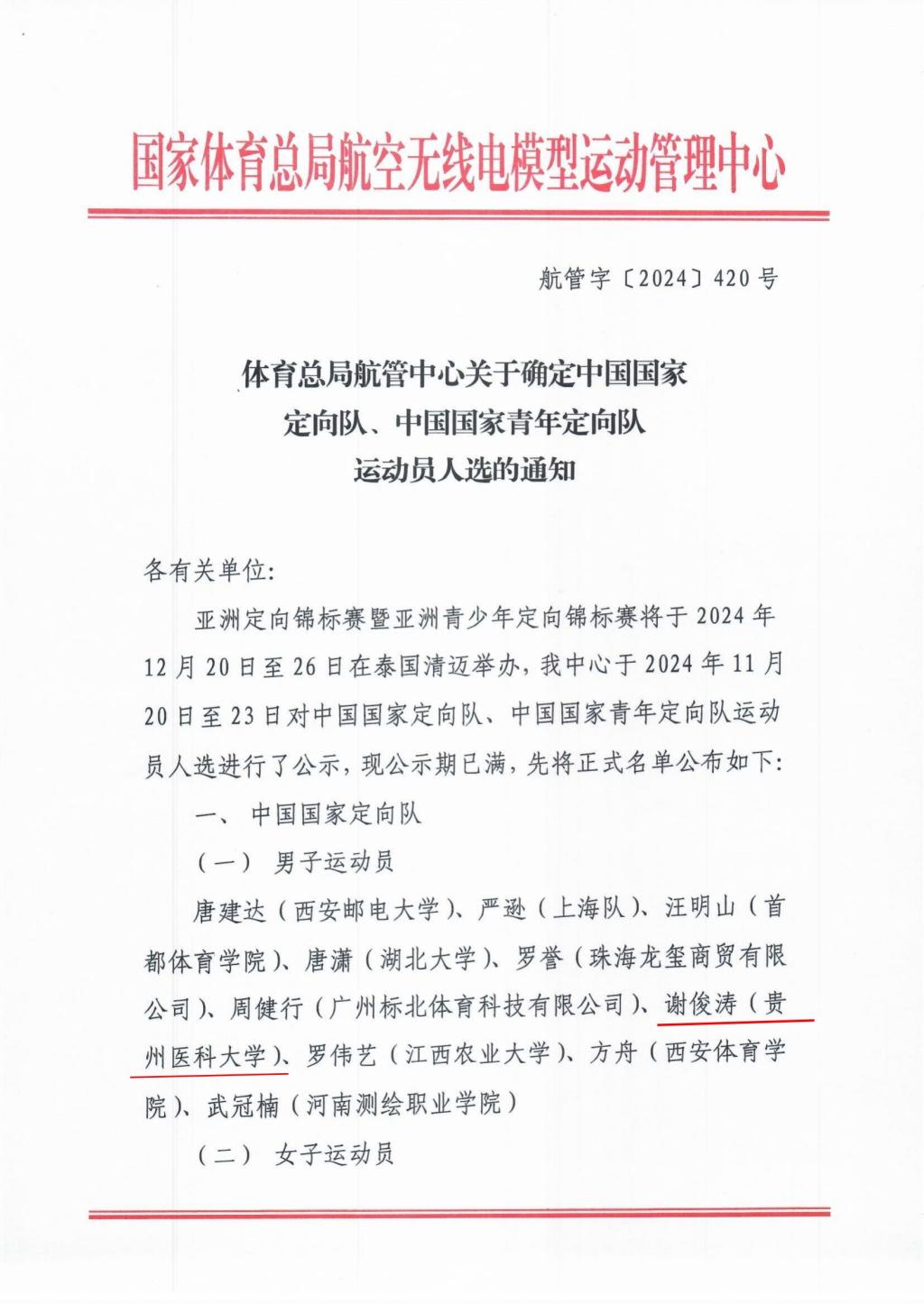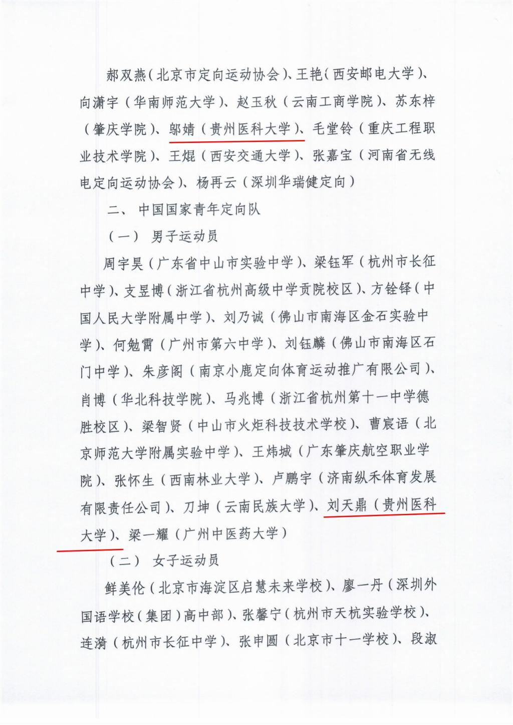 为备战2024 年亚洲定向锦标赛暨亚洲青少年定向锦标赛,体育总局航管中心启动组建中国国家定向队、中国国家青年定向队。近日,选拔结果揭晓,经过激烈角逐,永利官网运动与健康学院老师谢俊涛、2021级社会体育指导与管理专业学生邬婧和公共卫生与健康学院2022 级食品卫生与营养学专业学生刘天鼎成功入选,将代表国家参加相关赛事。此次入选不仅是对学校定向运动水平的高度认可,更为学校体育事业发展注入了强大活力。