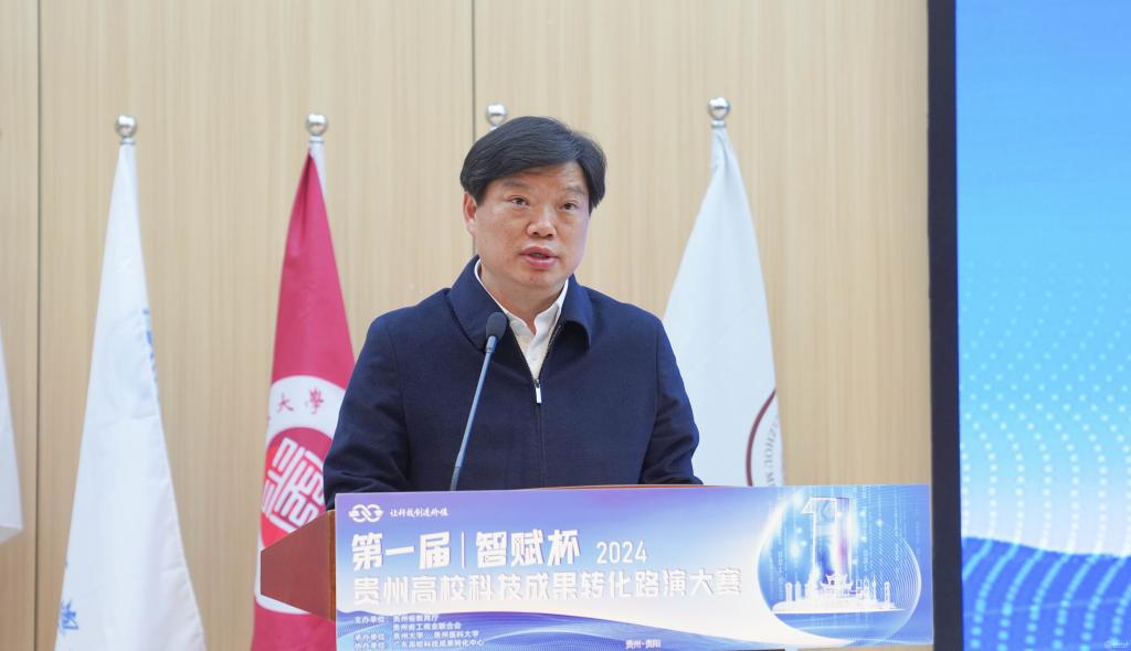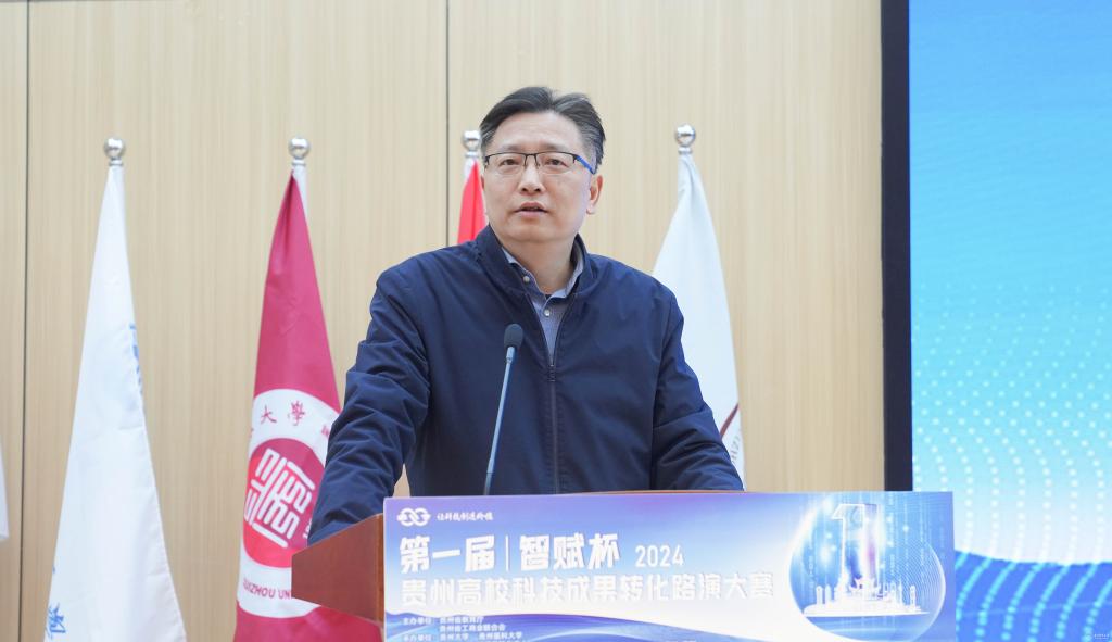 永利官网党委副书记、校长罗鹏在致辞中对与会领导、嘉宾和参赛队员表示欢迎,他介绍,长期以来,77779193永利官网高度重视科技创新和成果转化工作,加强有组织的科研,推动科技成果转化体制机制改革,持续推进产学研合作,多层次、多角度促进成果转化,取得了明显成效,科技成果转化与技术合同交易额连续多年位居贵州高校前列,荣获教育部首批“高等学校科技成果转化与技术转移基地”“国家级创新创业教育实践基地”。希望通过这次比赛,搭建起交流合作的桥梁,推动更多科技成果转化为新质生产力,从校园走进企业、从实验室走向生产线、从‘书架’走上‘货架’,助力经济社会发展。
