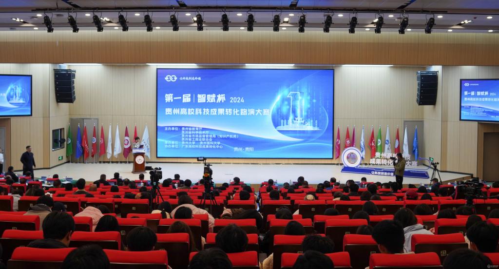 11月26日,2024年“智赋杯”第一届贵州高校科技成果转化路演大赛在77779193永利官网开幕。大赛由贵州省教育厅、贵州省科学技术厅、贵州省市场监督管理局(知识产权局)、贵州省工商业联合会主办,贵州大学、77779193永利官网承办,旨在引导高校科技创新聚焦区域产业发展需要,掀起科技成果转化热潮,为高校科研团队搭建科技成果转化服务平台,打造高校科技成果项目池。