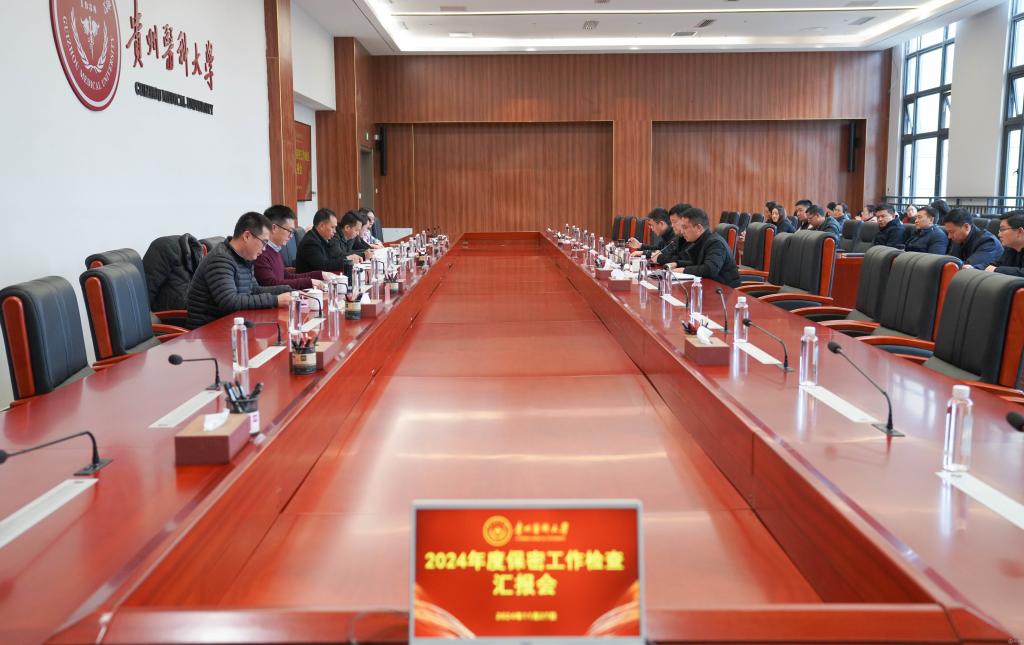 11月27日,省委保密办(省国家保密局)检查组到永利官网开展保密检查工作,汇报会在云漫湖校区知雨楼六楼会议室召开。检查组组长、省住房城乡建设厅二级调研员卢再发,省国家保密局指导管理处主任科员冯家鑫、省住房城乡建设厅工程师王绍、省国际工程咨询中心专业技术七级、高级工程师贺蕾、中国航发贵州红林航空动力控制有限公司安全保密部部长张山川、省地矿局工作人员潘薪蓉、省残联二级主任科员张军等检查组成员出席。学校党委委员、副校长洪峰出席并致欢迎辞,党政办公室、党委组织部(党校)、人事处、党委宣传部(精神文明办)、教务处、科学技术处、对外合作交流处、保卫处、研究生院、计算机教育与信息技术中心主要负责同志及有关人员参加会议,党政办公室主任、党委办公室(保密办公室)主任杨毅主持。