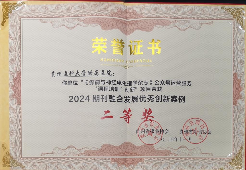 永利官网案例“举旗铸魂担使命 守正创新最强音”荣获2024年度贵州报纸融合发展创新案例二等奖,贵医附院案例“《癫痫与神经电生理学杂志》公众号运营服务‘课程培训’创新”荣获2024年度贵州期刊融合发展创新案例二等奖。