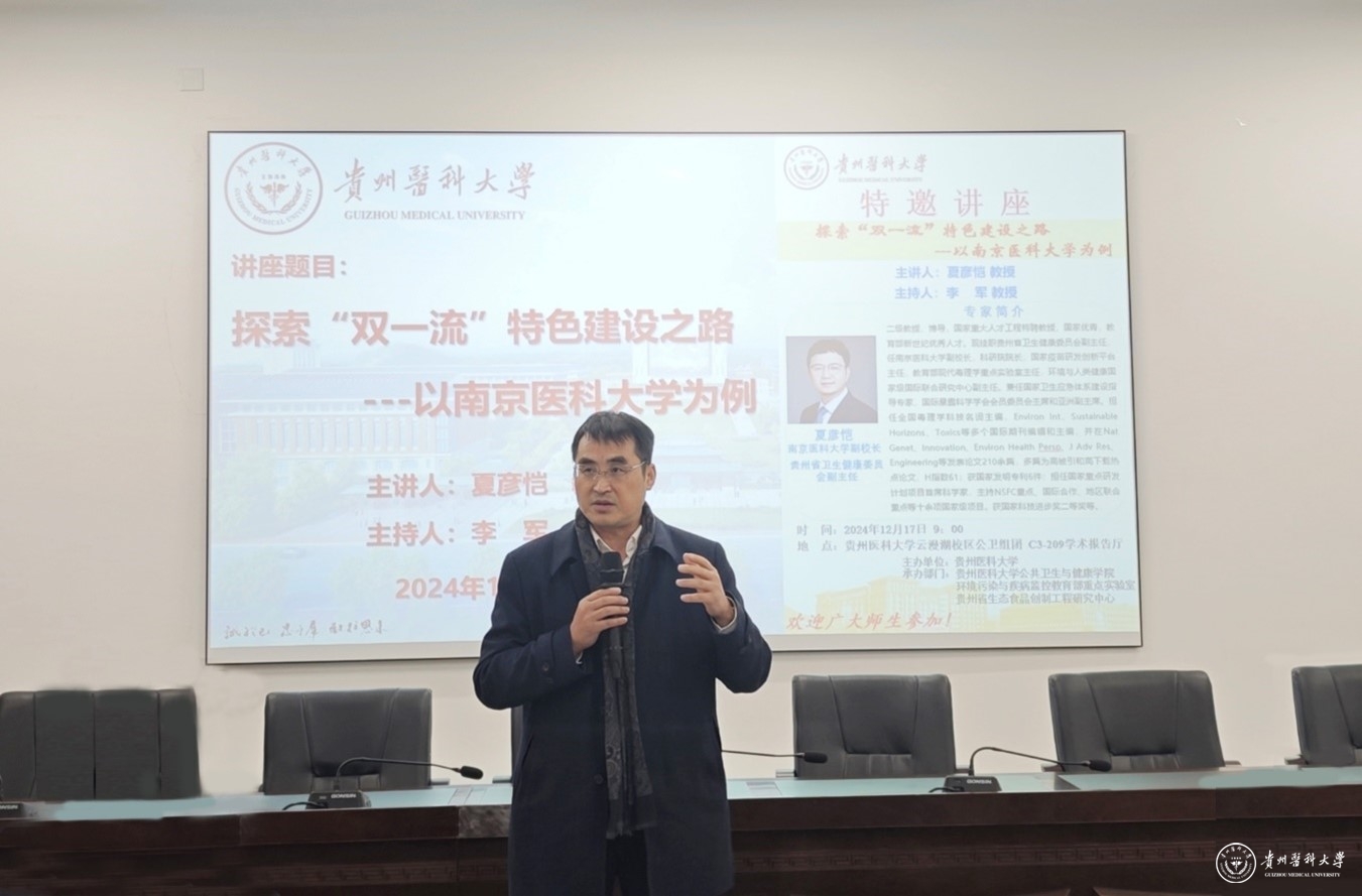 12月17日,南京医科大学副校长、贵州省卫生健康委员会副主任夏彦恺教授应邀到永利官网为公共卫生与健康学院教师作题为《探索“双一流”特色建设之路——以南京医科大学为例》专题讲座。校党委副书记、校长罗鹏出席,公共卫生与健康学院党委书记郑维薇、副院长李军、王大朋,环境与健康重点实验室副主任黄江以及公共卫生与健康学院教师参加。