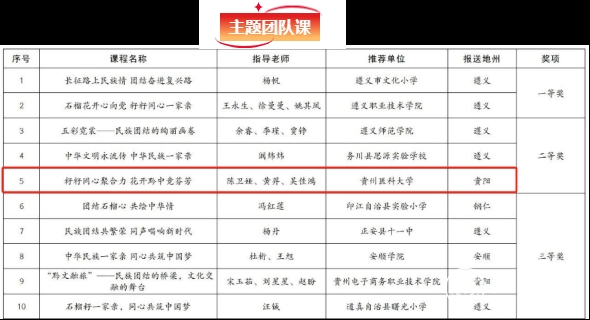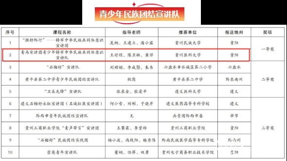 近日,省民宗委、省教育厅、团省委联合公示了2024年贵州省青少年铸牢中华民族共同体意识教育实践活动获奖情况。永利官网青马宣讲团青少年铸牢中华民族共同体意识宣讲队荣获全省青少年民族团结宣讲队一等奖和主题团队课二等奖。