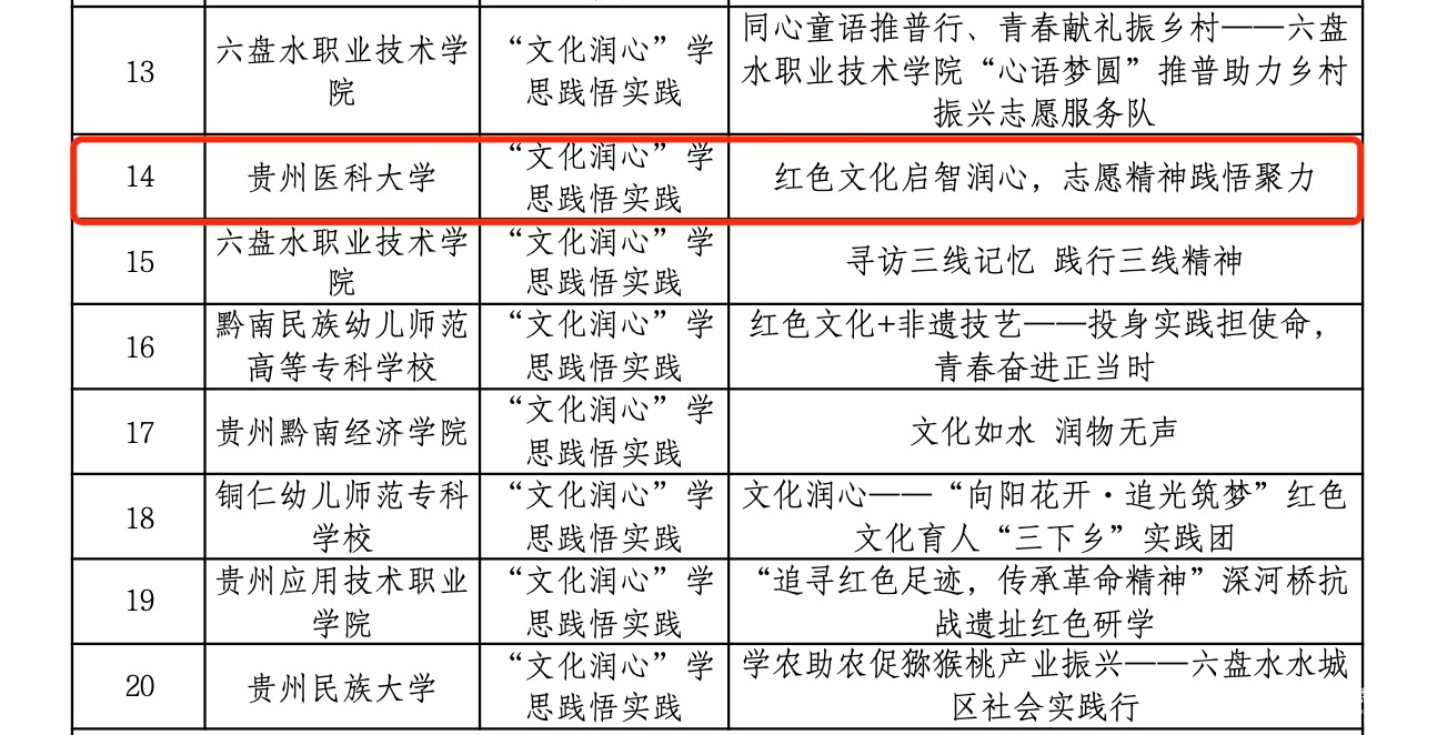 暑期“三下乡”社会实践是推动永利官网思政实践工作的重要抓手,创新打造了同题共答的育人共同体。永利官网将持续强校内外联动,打造有贵医特色的思政实践育人品牌,积极引导在校大学生在参与社会实践中认识国情、了解社会,受教育、长才干、作贡献。