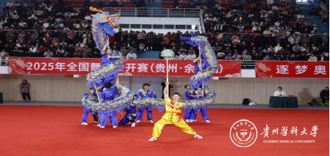 本次比赛汇聚了来自全国各地近150名舞龙运动员参赛,他们在赛场上各展风采,为观众带来了一场场精彩绝伦的视觉盛宴。永利官网舞龙队队员们身着特色服饰,精神抖擞,随着激昂鼓点,巨龙灵动游走,时而腾飞、时而翻滚,动作行云流水,高难度的盘龙、跳龙动作一气呵成,队员间配合默契,将龙的神韵展现得淋漓尽致,赢得现场观众的阵阵喝彩与掌声,充分展示了贵医学子的独特风采。