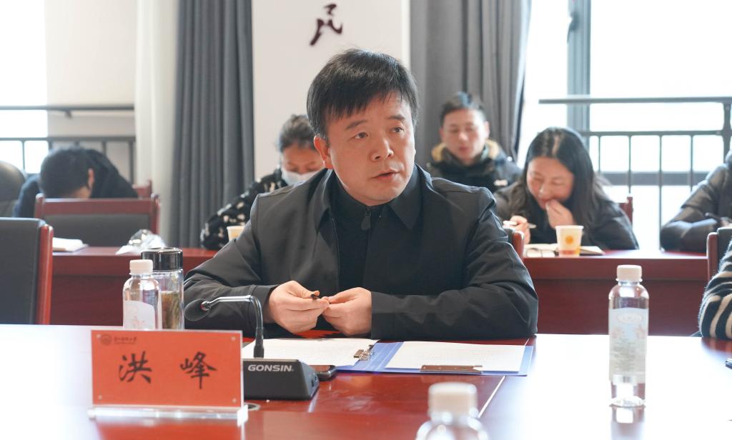 洪峰现场调度与会各部门、学院反映的情况问题,问询2025年寒假期间各项工作落实情况,并就春季学期开学后和一季度需要重点落实的毕业生学业就业帮扶、后勤服务保障、基建安全生产、实验室规范化管理、智慧校园应用、交通环境优化、值班值守等工作进行安排。