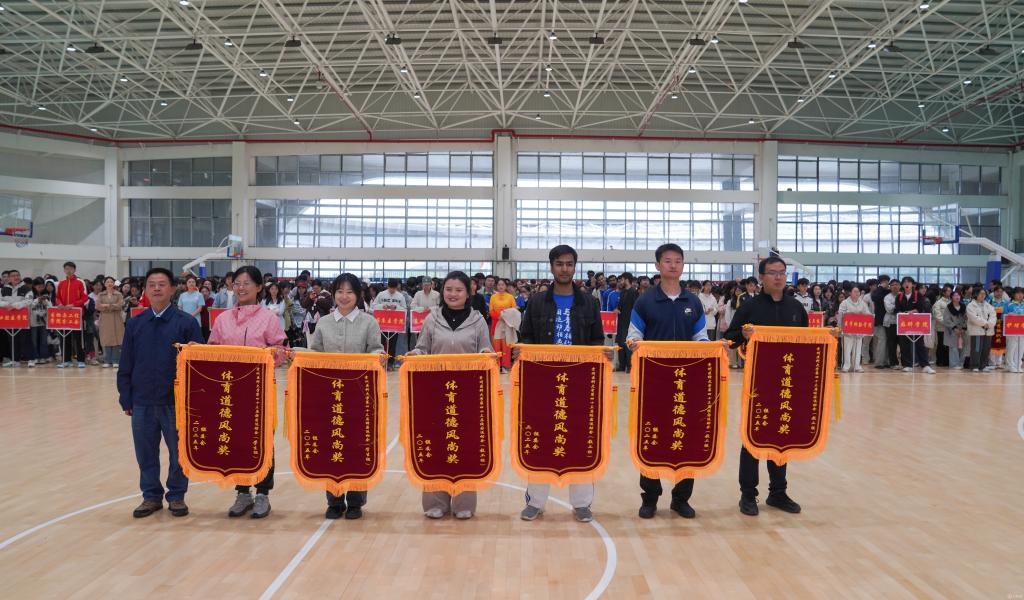 曾柱和党政办公室、党委宣传部、学工部、校团委、运动与健康学院等部门负责人为运动员颁奖。