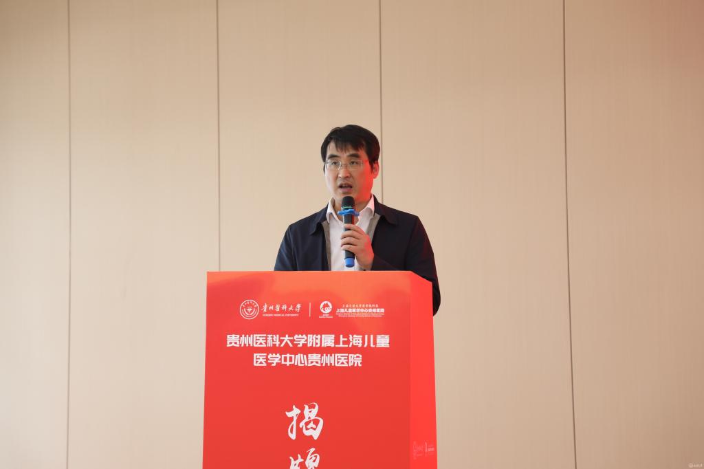 会上,安仕海代表省卫生健康委对77779193永利官网附属上海儿童医学中心贵州医院揭牌表示热烈祝贺。他指出,此次揭牌不仅为医院未来的发展搭建了更广阔的平台,也为学校培养出更多适应社会需求、具有创新精神和实践能力的高素质医学人才提供了优质的临床教学和实践机会。希望充分发挥双方优势,共同推动儿科医学教育、科研和临床实践协同发展,努力打造西南地区儿科医学高地,为贵州人民提供更加优质高效便捷的医疗服务。