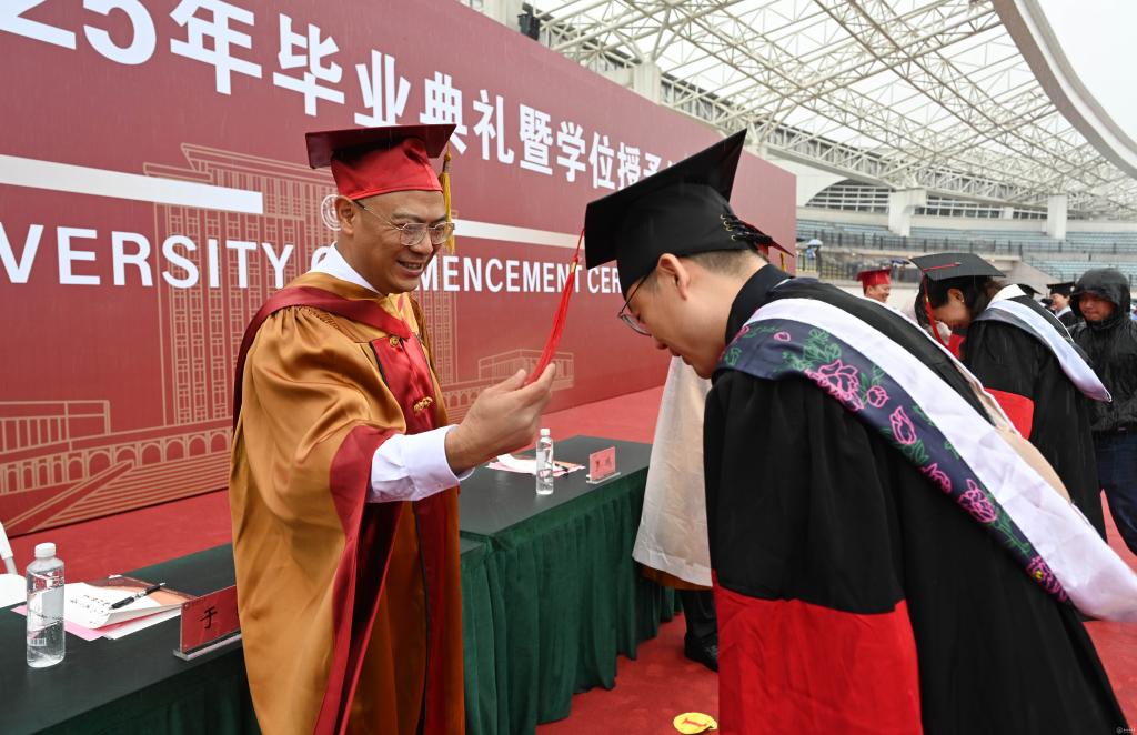 校学位评定委员会成员依次为2000多名博士、硕士、本科毕业生授予学位。毕业生们佩戴学位帽,庄重行礼,眼中闪烁着泪光与自豪。
