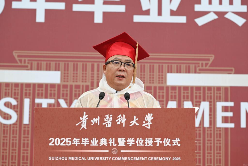 罗鹏寄语毕业生,他以“胸怀天下、虚怀若谷、勤学善思、修身立德”四点嘱托,勉励学子将个人理想融入国家发展,以仁心仁术守护人民健康。他强调,医学教育不仅要传授技艺,更要培育“健康所系,性命相托”的责任担当,希望贵医毕业生们坚守“诚於己、忠于群、敬往思来”的校训精神,做人民健康的守护者,让青春在党和人民最需要的地方绽放绚丽之花。